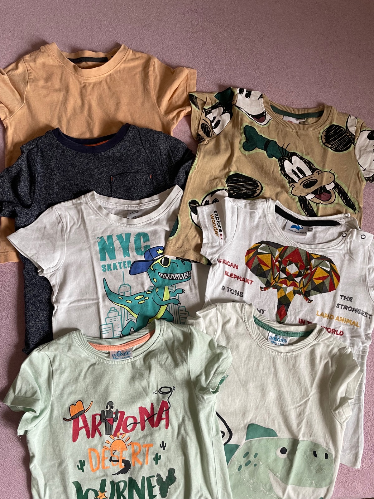 Predám trička v dobrom stave. Veľkosti sú 98/104. Značky sú Lupilu, pepco, F&F. Cena spolu 4€ + doprava (radšej Packeta)