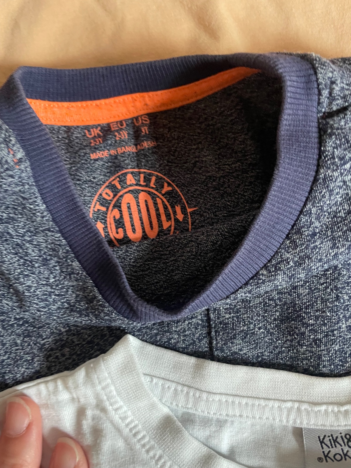 Nosene, no v dobrom stave. Hoci obe tricka maju rovnaku velkost 98/104, ich rozmery su nasledovne: pasikave - sirka 2x31cm, dlzka 36cm a tmavomodre - sirka 2x 32cm, dlzka 39cm. + postovne