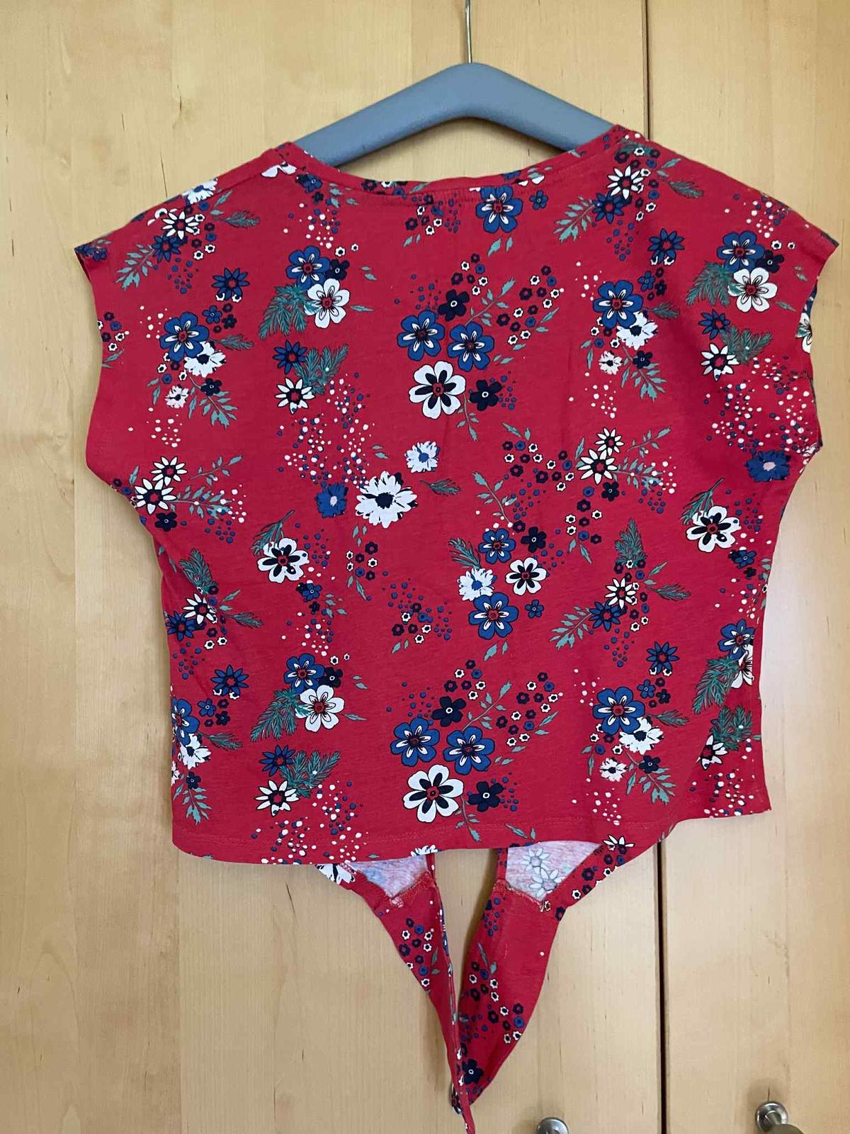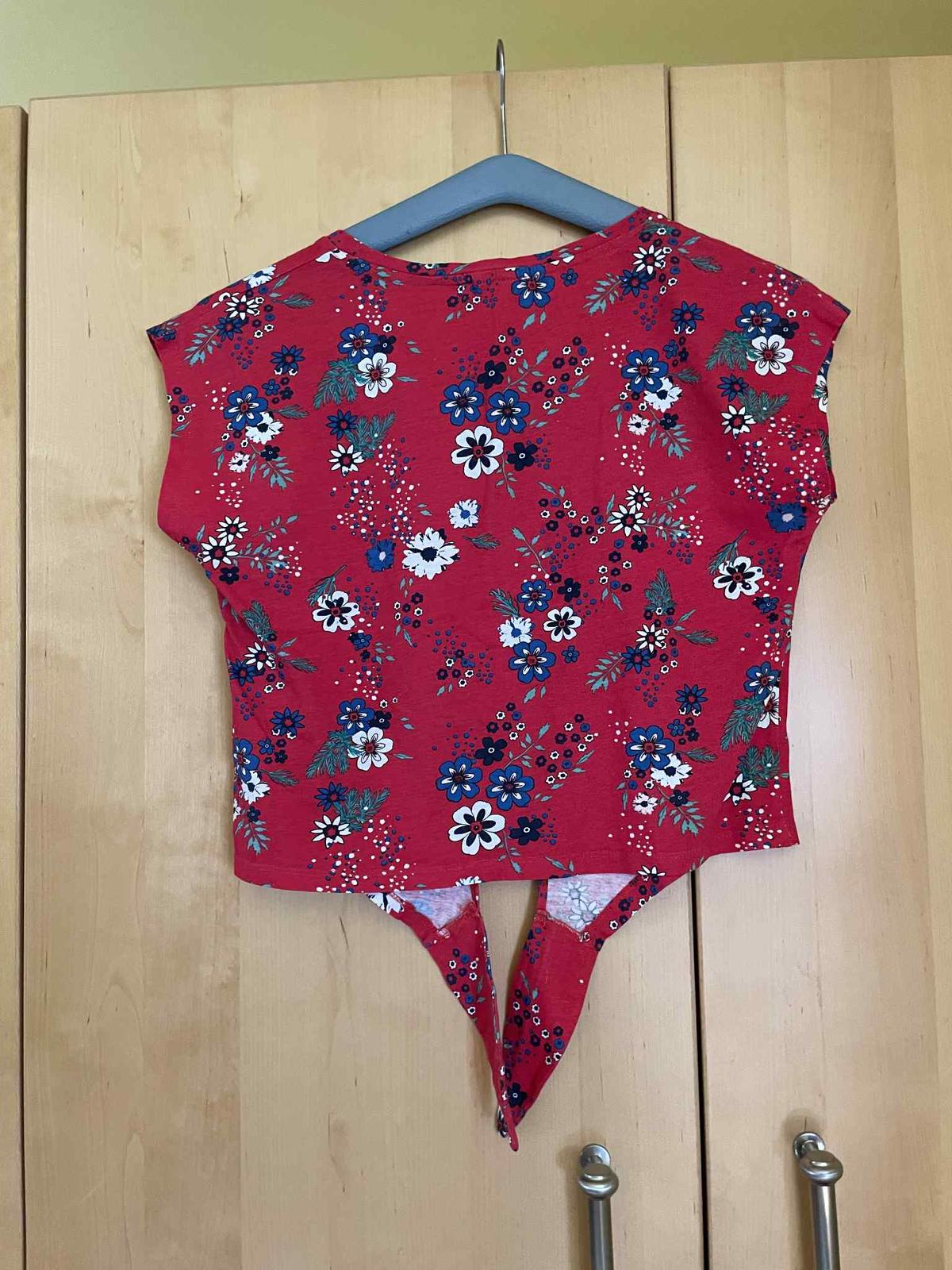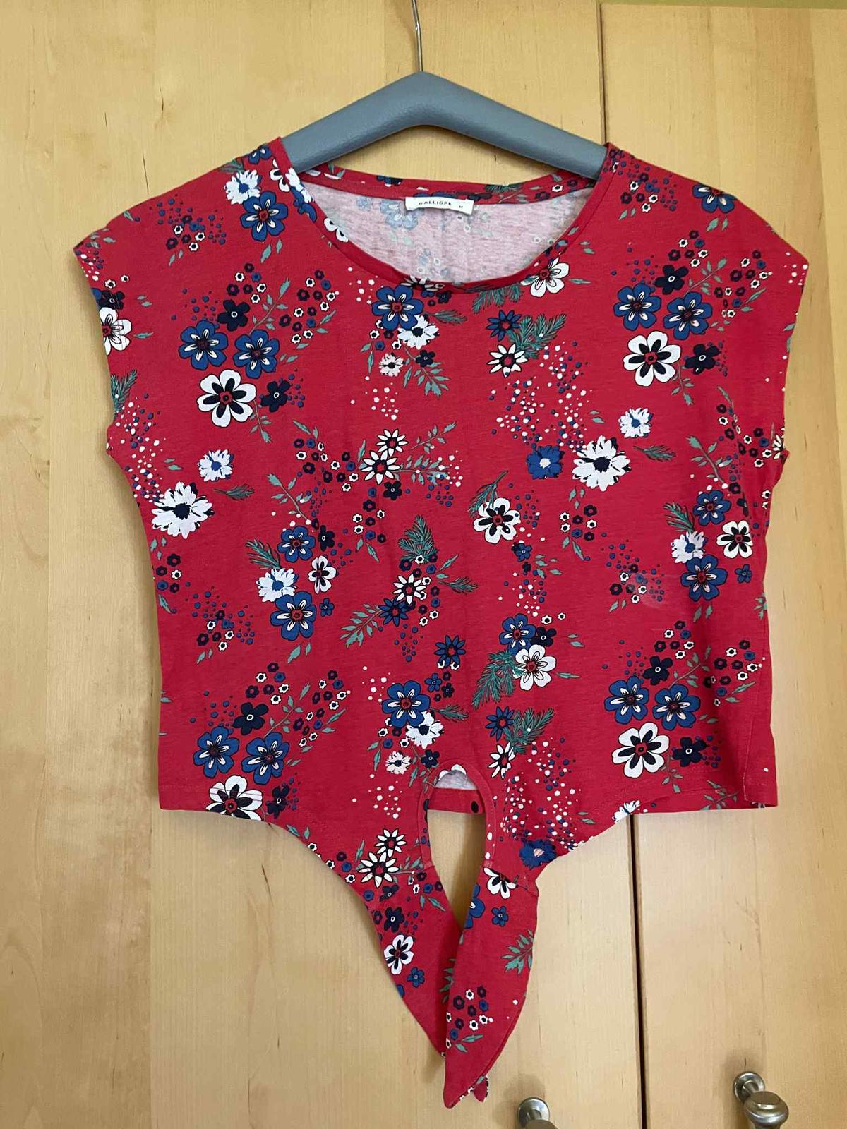 Cerveny a biely kvetinovy kratky top je velkost M, cena 2€za ks