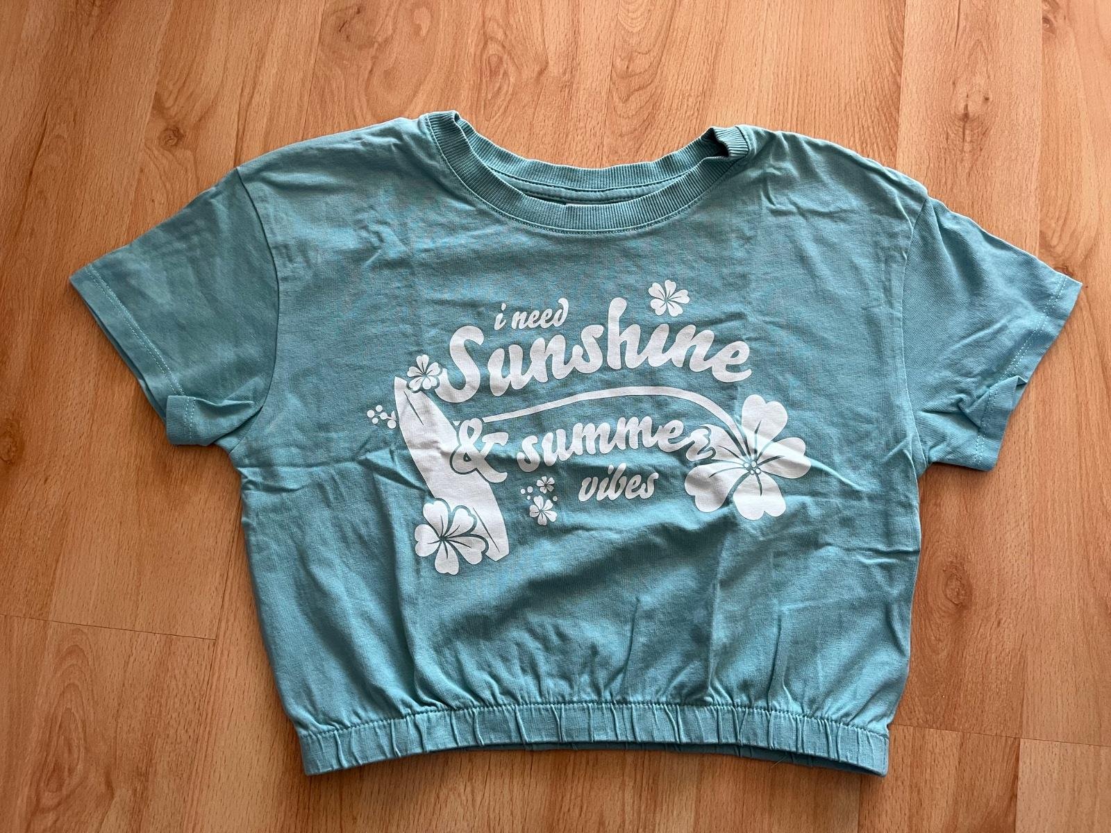 Tričko s krátkym rukávom, top stav, veľkosť 146/152, dĺžka 39 cm, šírka v podpazuší 43 cm.