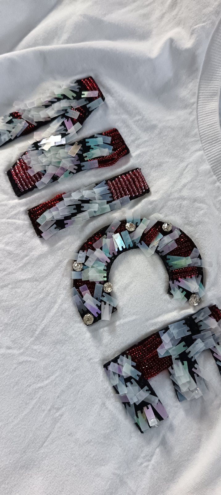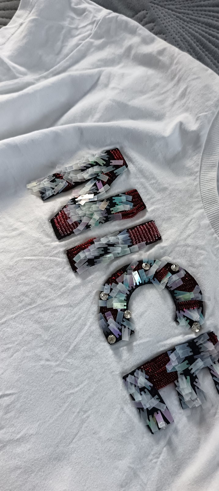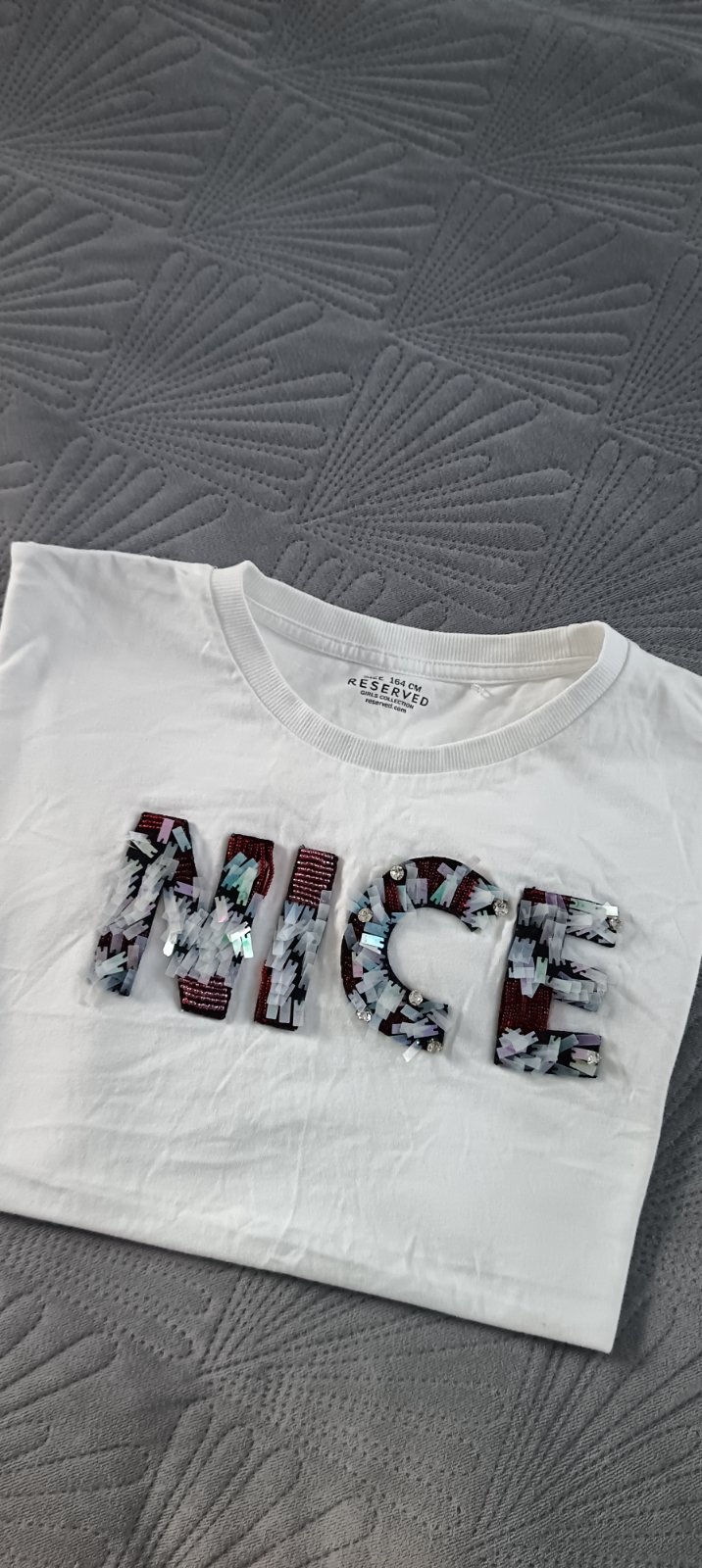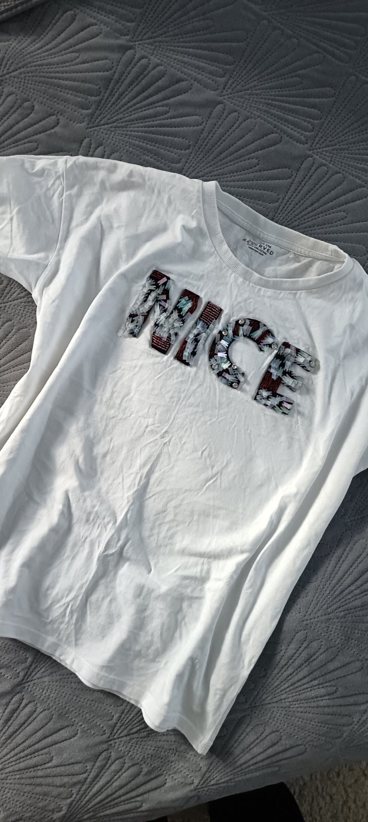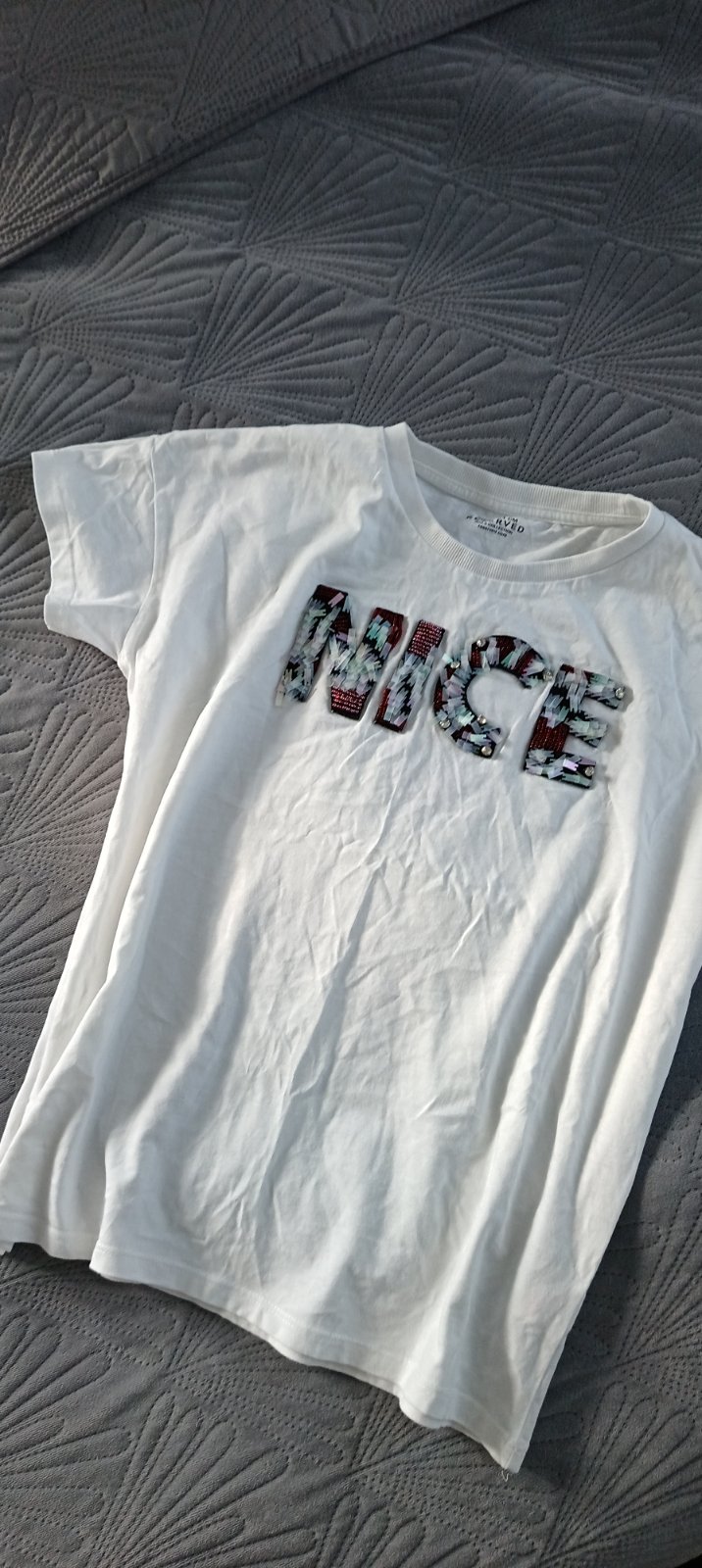 Predám krásne biele tričko s aplikáciou,s flitrami a korálkami.