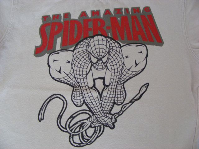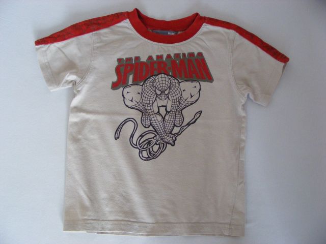 Béžové tričko v kombinácii s červenou Spiderman zn. H&M.