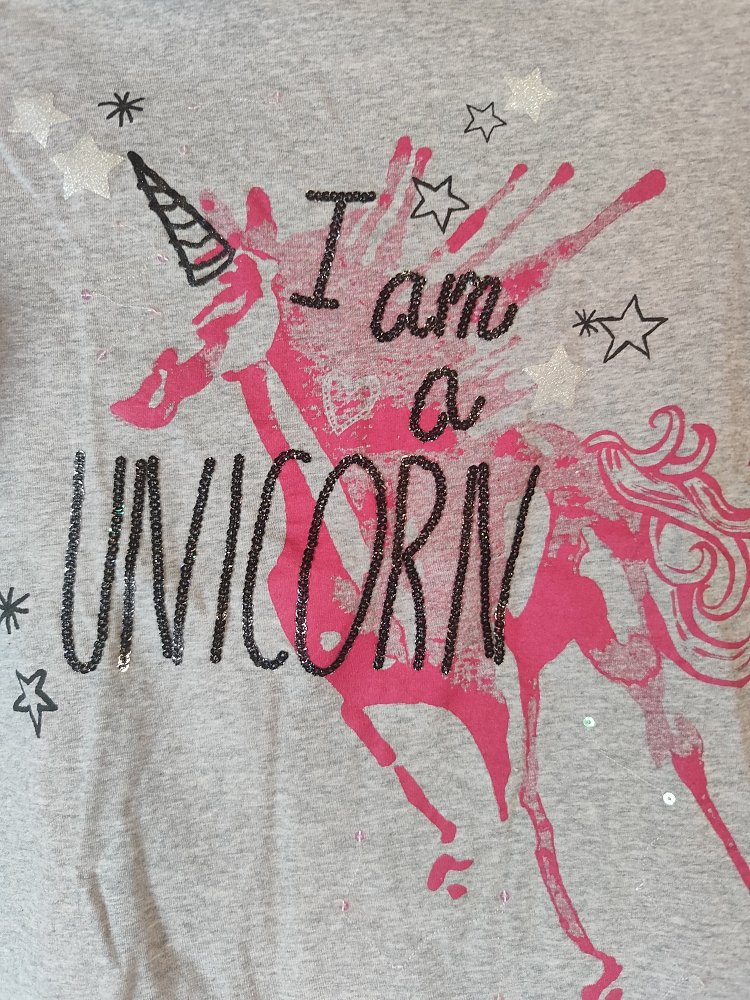 mile sive tričko Unicorn , tenšie, veľ.13/14 rokov , dl. 51cm, š. 42-49cm, rukáv od ramena 57cm, pekný stav