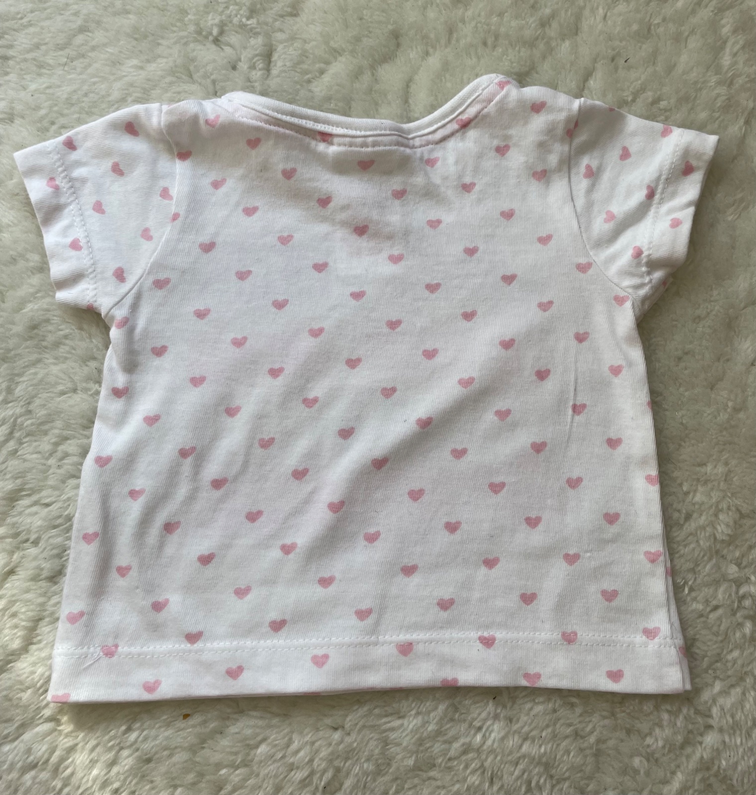 Bavlnene tricka biele so srdieckami s kratkym rukavom a bledocervene s topanockami s maslickou s dlhym rukavom, neposkodene, cena dokopy