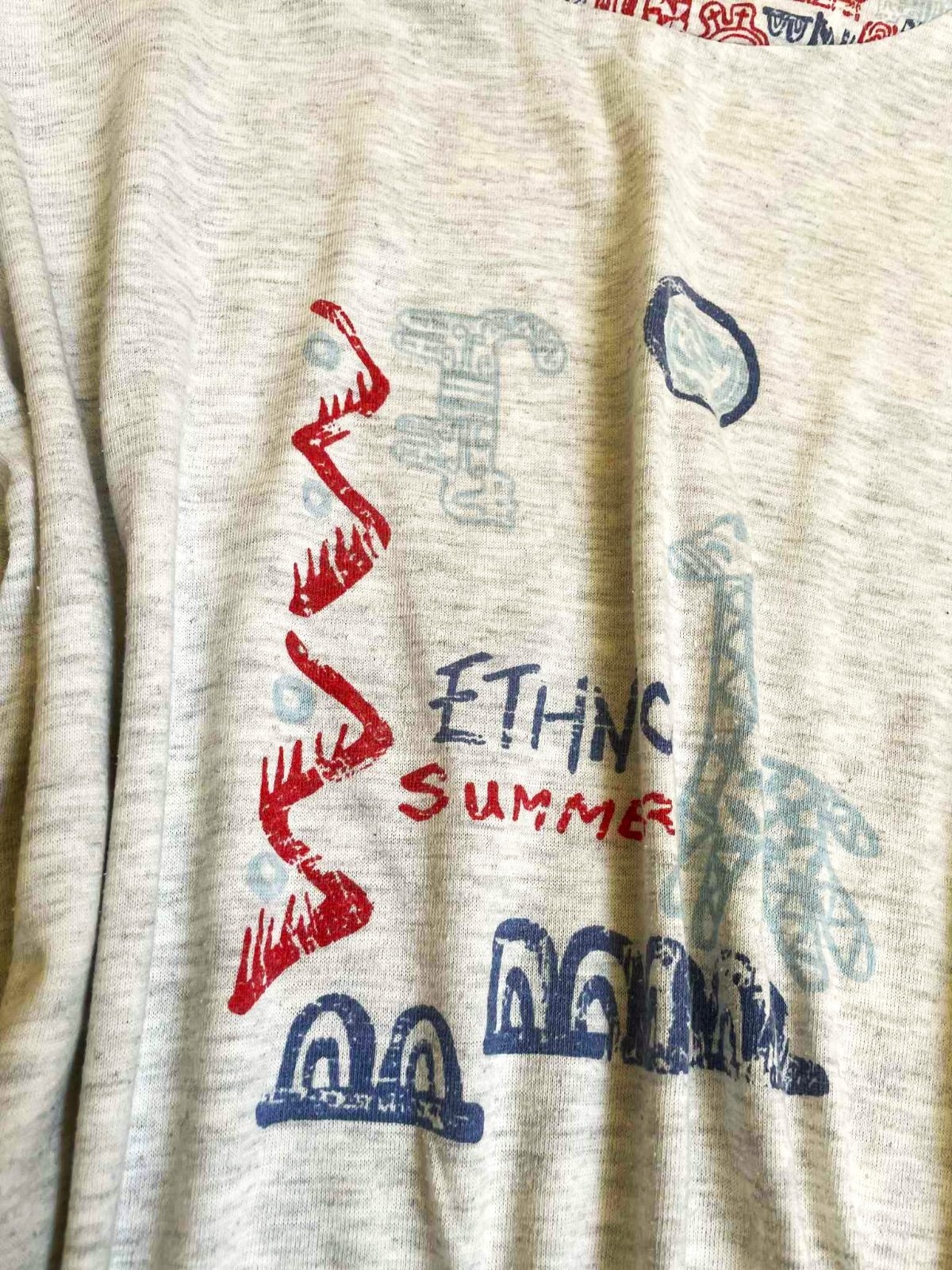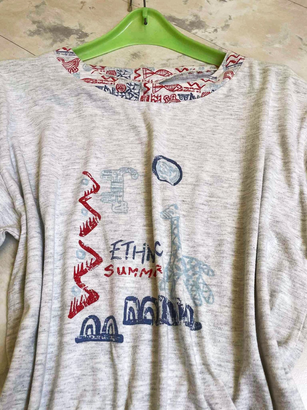 tričko s etno motívom,málo nosené,veľmi kvalitné,výborný stav,nekrčivé,nie je strečové,ale obsahuje aj prímes syntetiky