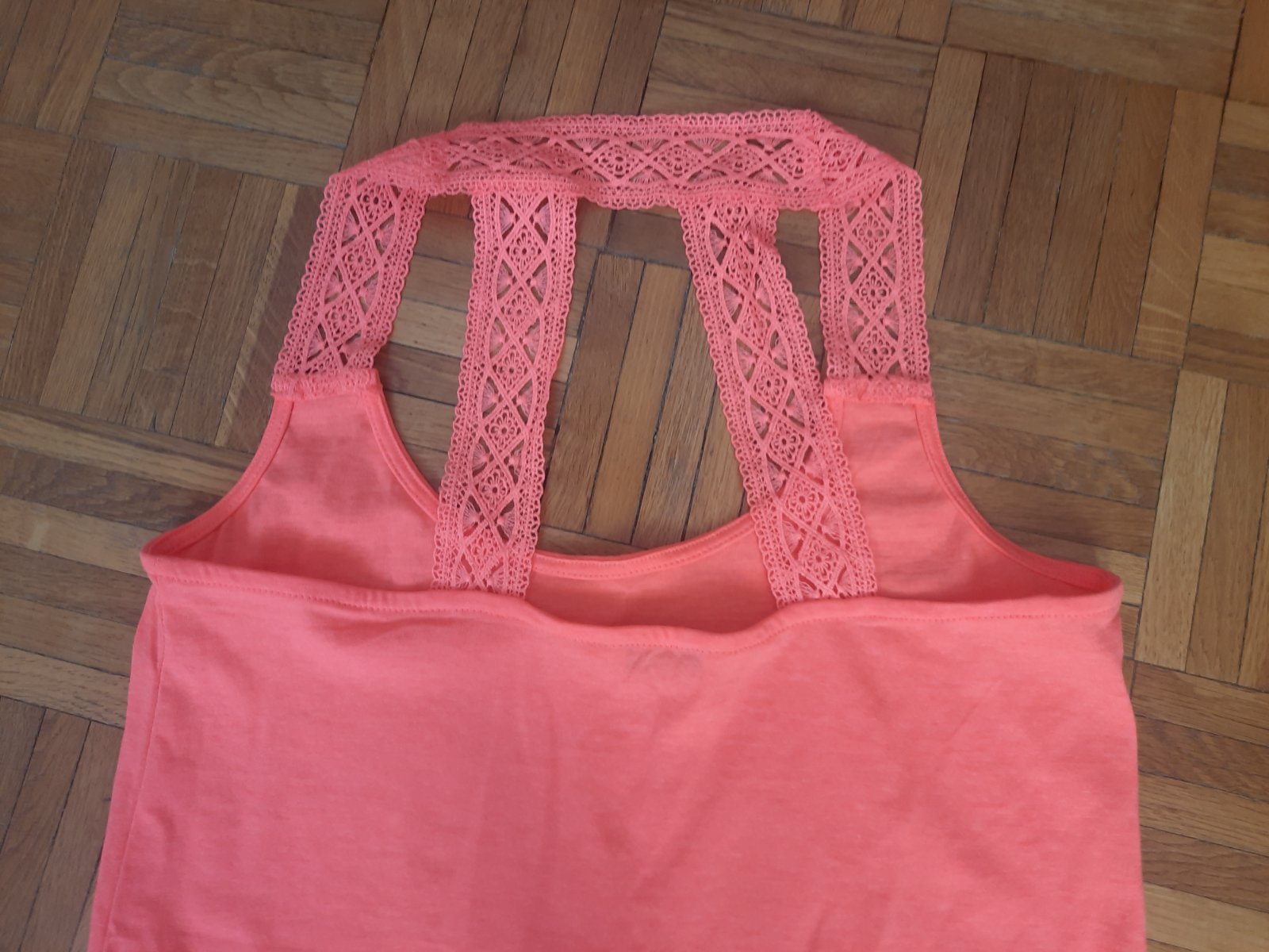 Top/body bez rukávov krásnej lososovej farby. Cez prsia gumička po celom obvode,takže nepadá. Nevynosený,v perfektnom stave.