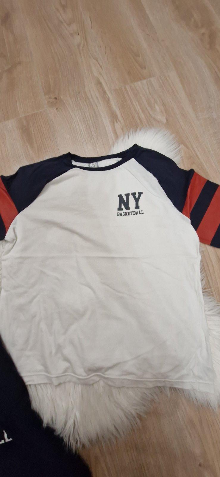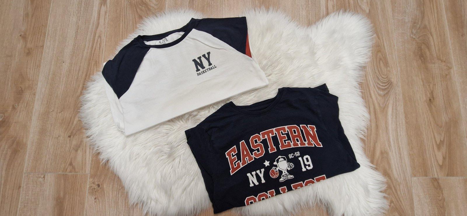 Predám 2 kusy tričiek. 168/164. Top stav. Celková dĺžka 55cm, dĺžka rukávov od ramena 48cm, dĺžka rukávov od podpazušia 36cm, šírka v podpazuší 2x44cm, šírka v ramenách 2x36cm.