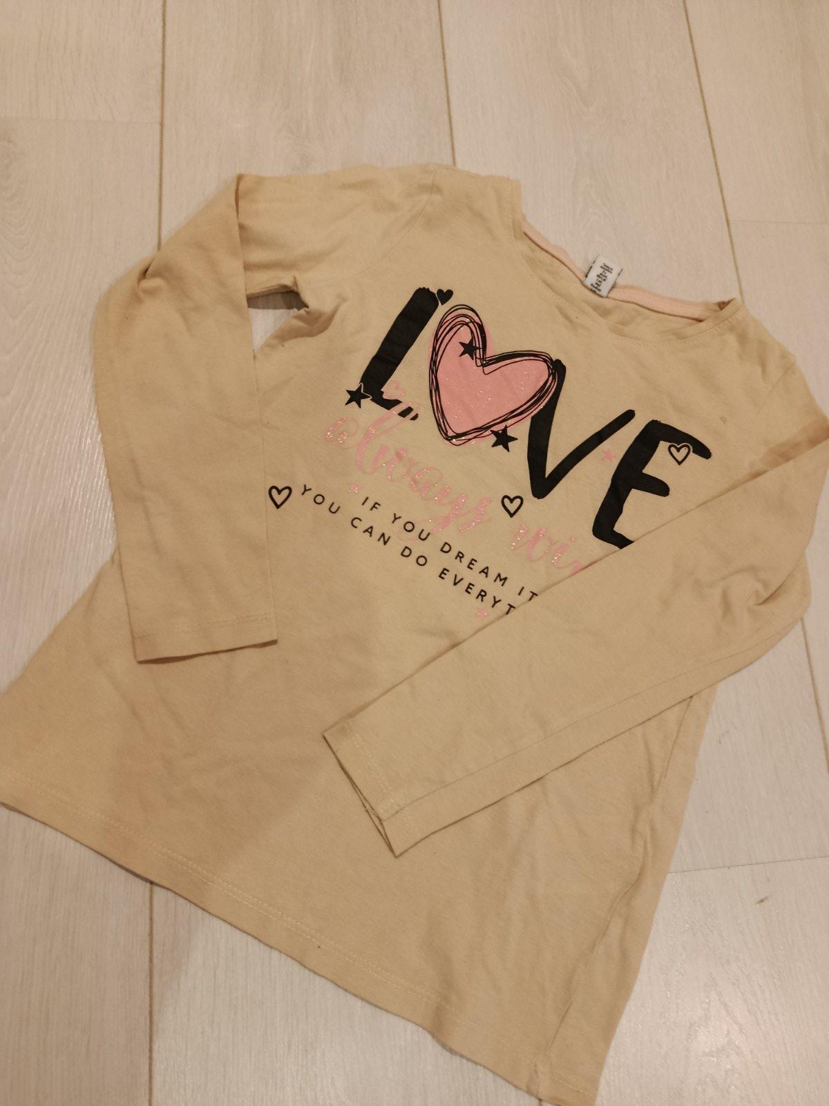 Ponúkam na predaj milé tričko po dcérke, kupované nové. Obľúbené. Tričko je v peknom nosenom stave, našla som chybky krásy - dva mini fliačky na ľavom rukáve a miničiarka od pera na pravom rukáve ...