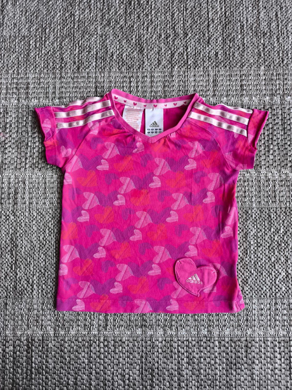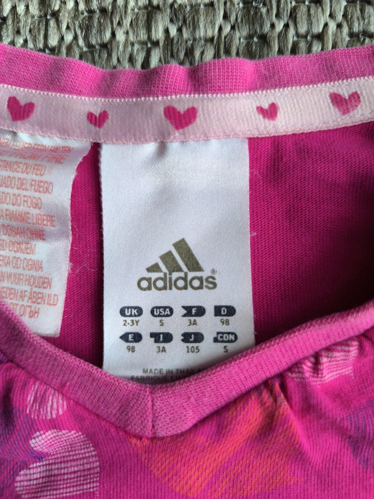 Adidas tričko s krátkym rukávom, s malým vreckom v tvare srdiečka 🩷 V super stave. 100% bavlna. Veľkosť 2-3 roky, 98. Dĺžka 39cm, šírka 32cm.