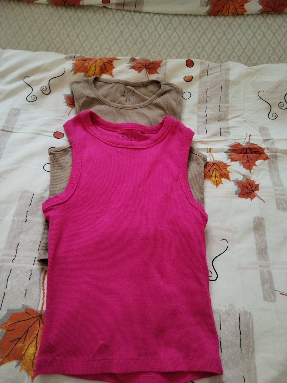 Pekne tričko-top iba 2x oblečene ,nepoškodene ,dlžka 64m ,širka pod pazuchami bez natiahnutia 43x2cm ,farby pekne pestre zle mi sfotilo