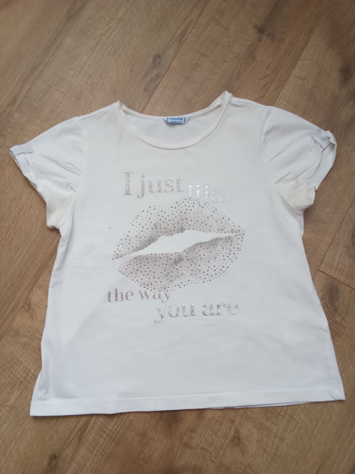 predám krásne tričko Mayoral, veľ. písaná 14 rokov, 158, ale zdá sa mi menšie, málo nosené vo výbornom stave, kvalitná elastická bavlna, dĺžka 53, šírka 40,5 v prsiach v najužšej časti, rukáv od kr...