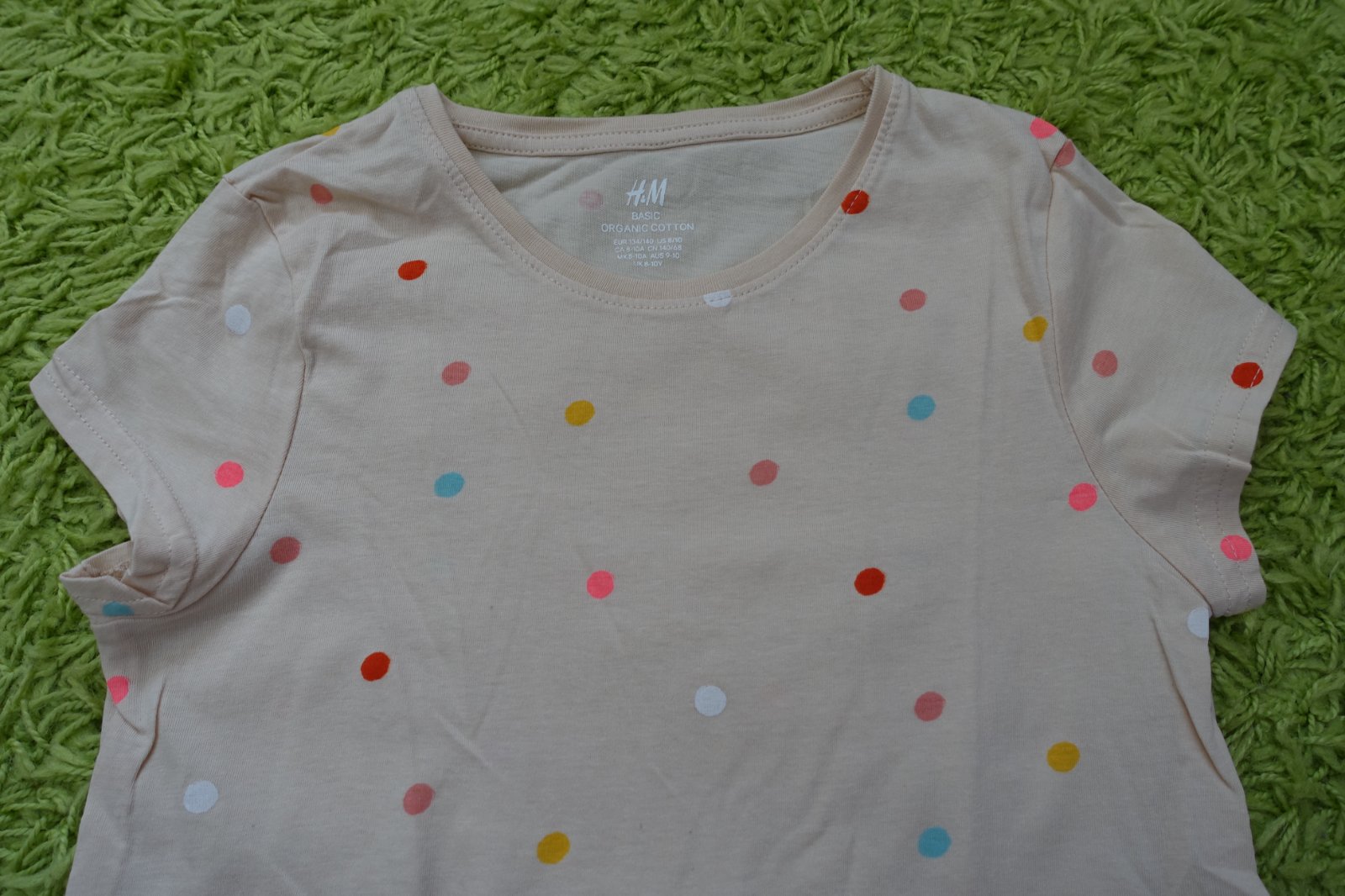 Predám krásne béžové tričenko s farebnými bodočkami. Veľmi krásne. Mali sme ho 1x, je top stav. Celková dĺžka predného dielu je 52 cm, zadný diel je ešte o 5 cm predĺžený. (G)