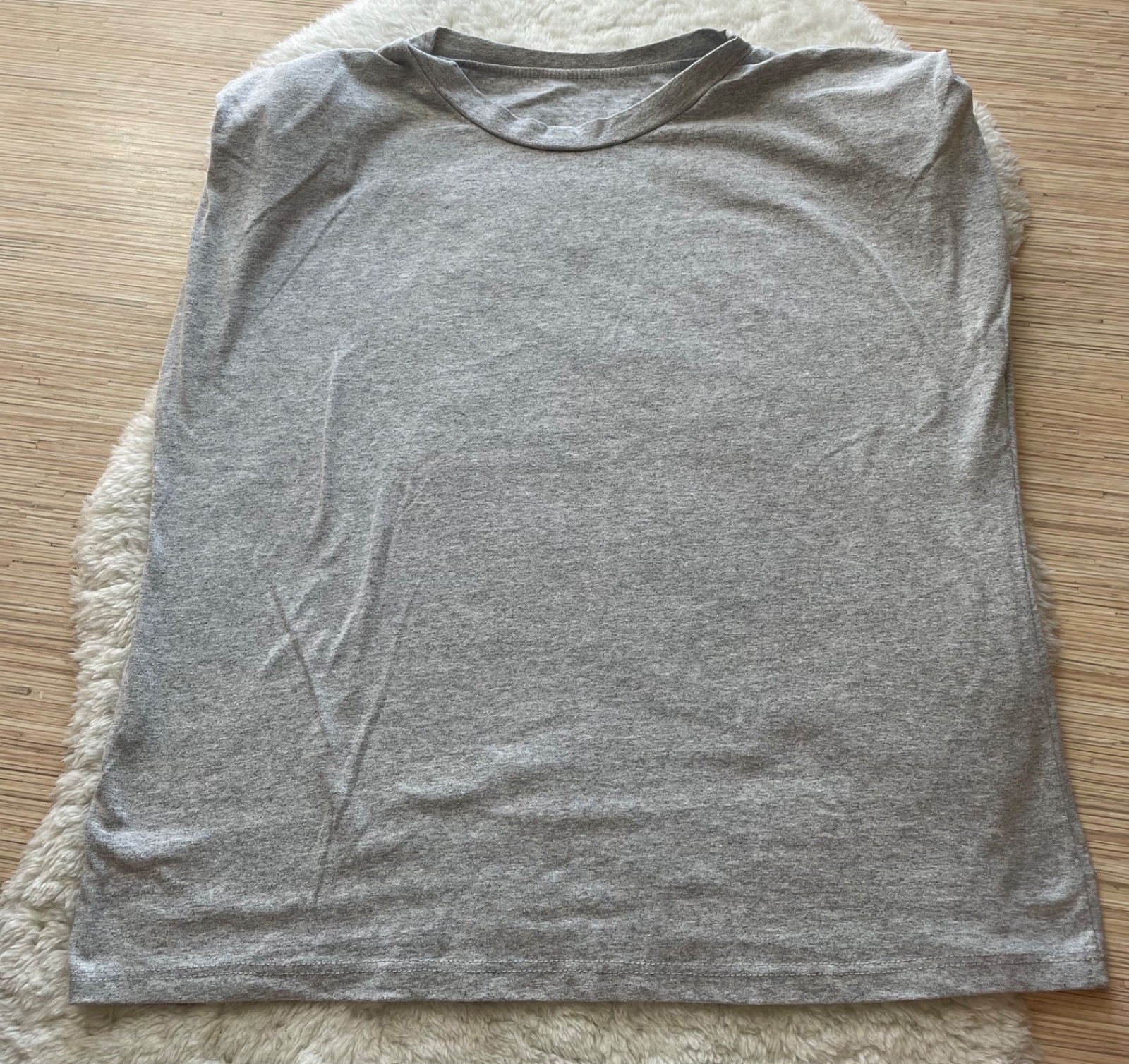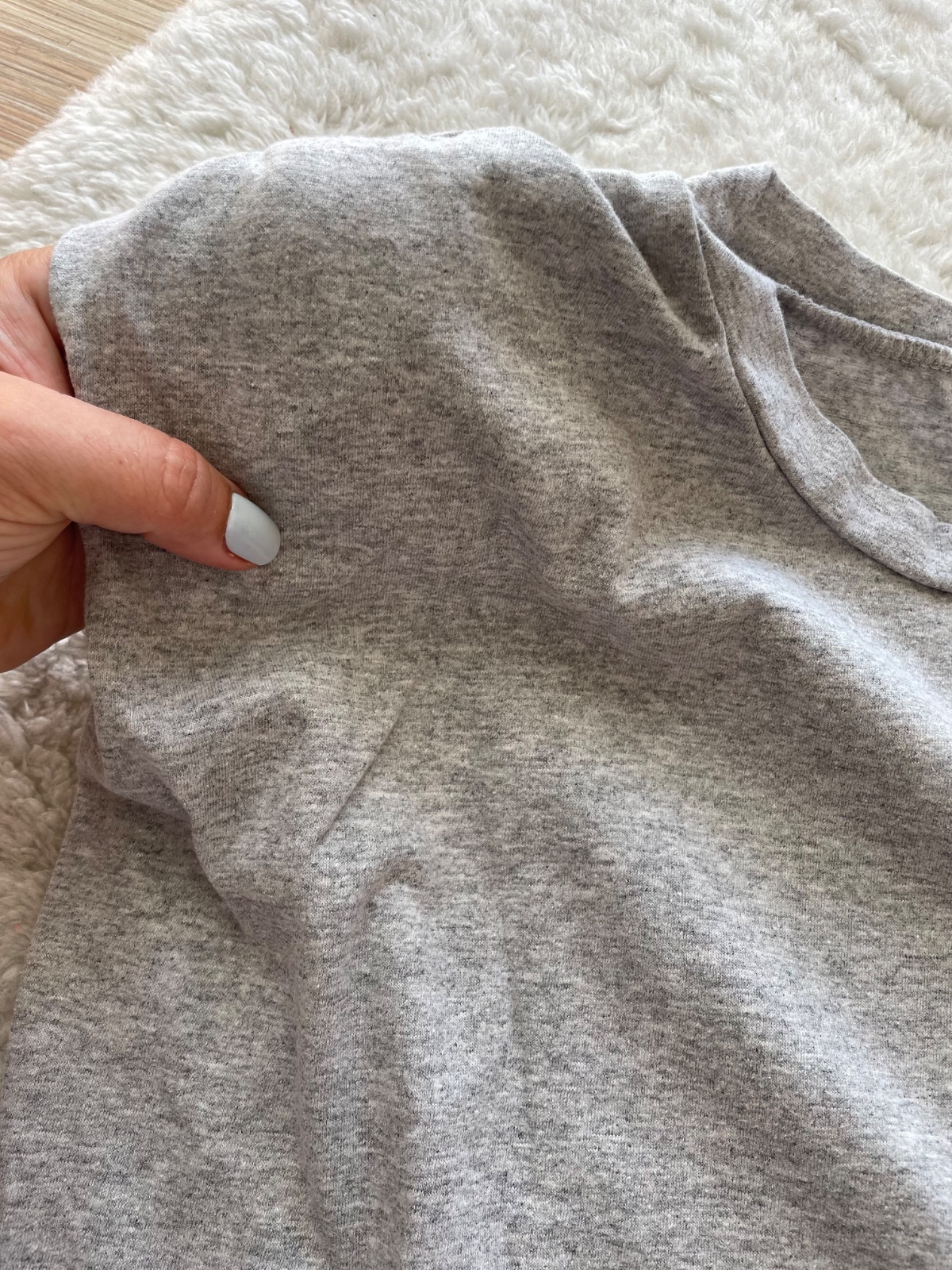 Svetlosede basic bavlnene tricko s vypchavkami na pleciach, krasne drzi, raz oblecene