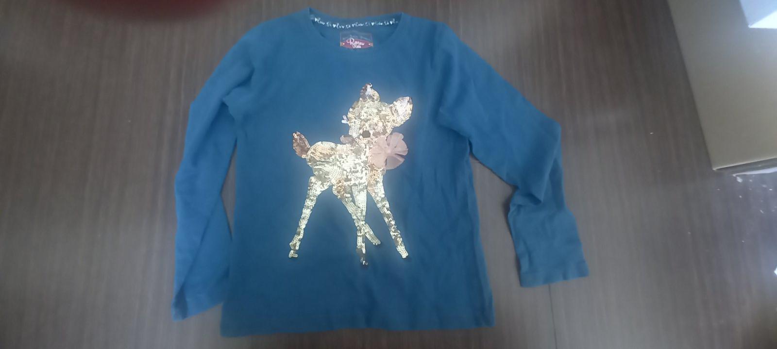 Nosené, na ľavom rukáve zvnútra zašitá dierka (viď detail ) , strieborné nažehlovačky trošku stratili farbu V.S, 7-8 r. (128/134), 100% bavlna RO: š 2x 36,5, dl. 49,5, rukáv od krku58/39,5 spod pa...