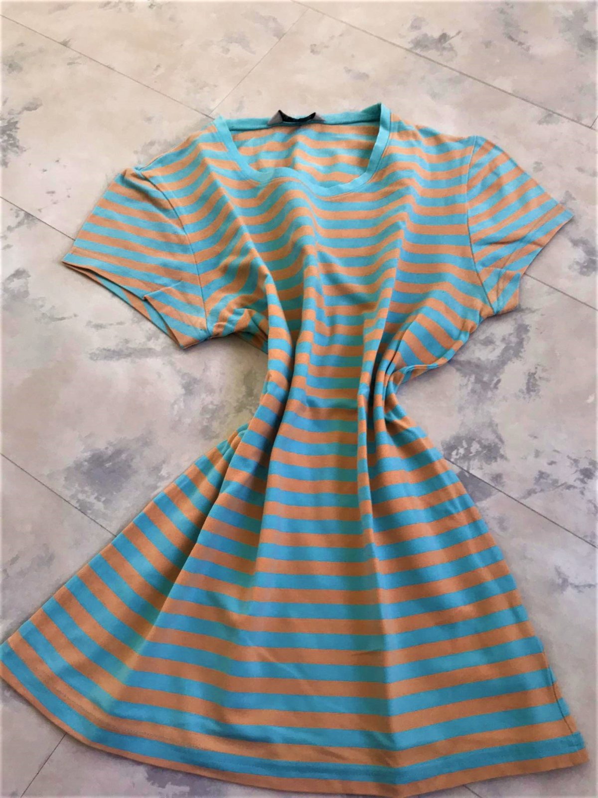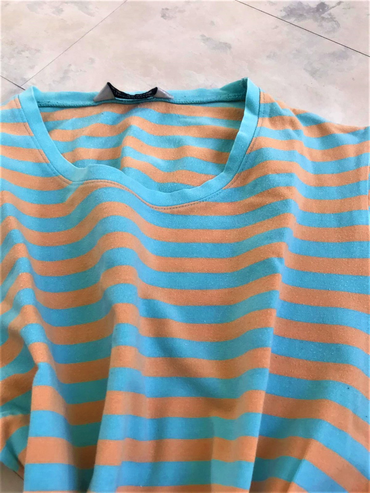 krásne kvalitné značkové neznosené tričko,uvedená veľkosť L,ale je to podľa mier na M-ko,dlžka celkom = 60 cm, šírka meraná pod pazuchou = 43 - 44 x 2 cm,farba ako na pestrejších obrázkoch,95 % ba,5% elastan
