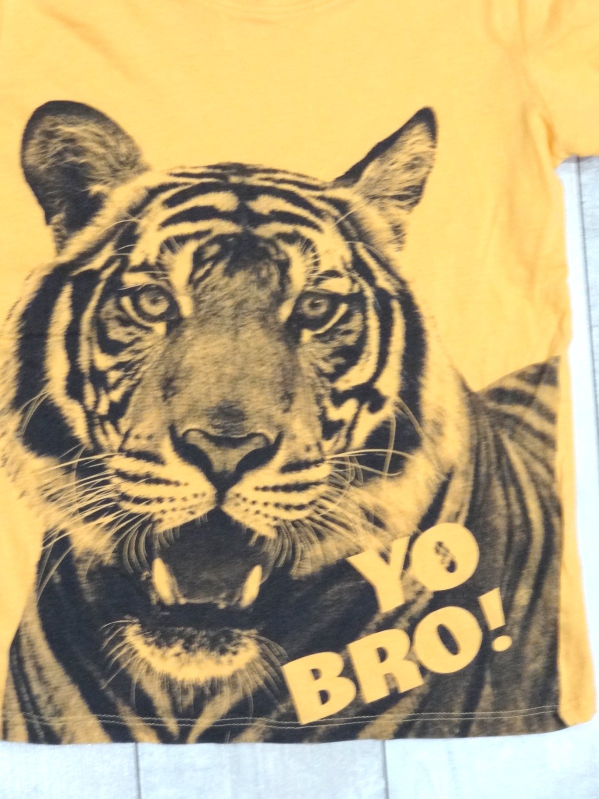 Oranžová tričko s obrázkom tigra, dobrý stav, značka: DOPODOPO, veľ. 128 - dlžka 49 cm, šírka 35cm