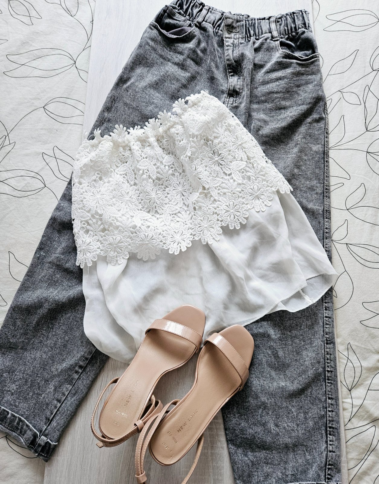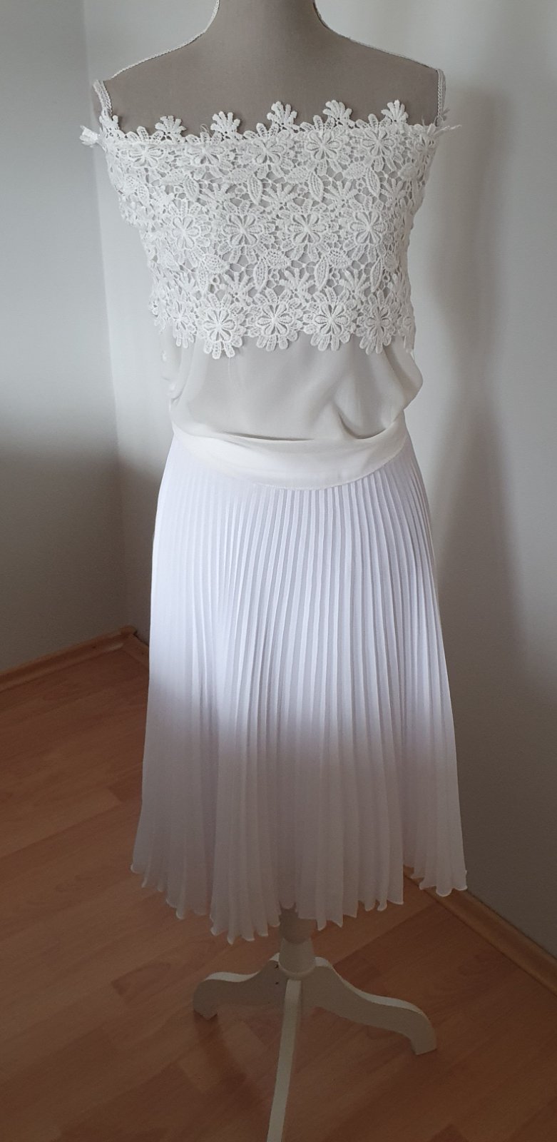 biely topík s čipkou.Rozmery:dĺžka -42cm,prsia -38x2 ,po natiahnuti na ramena -48x2cm