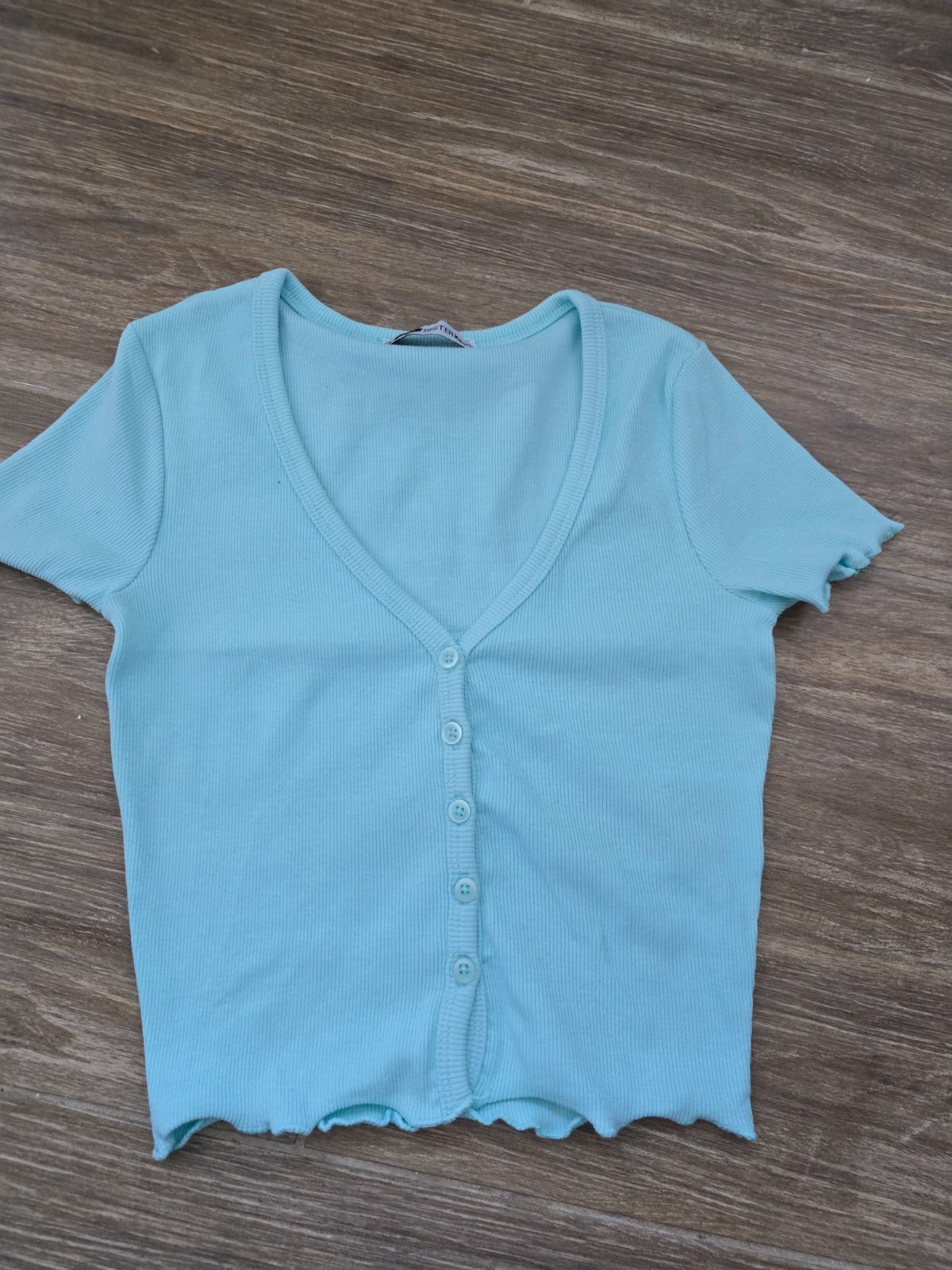 Tricko Hollister, velkost XS, velmi dobry stav akurat ked som chcela odtrhnut stitok rozparalo sa trosku bocne zosivanie. Ide to krasne zasit, nie je to roztrhnute, ja uz neriesim 😊