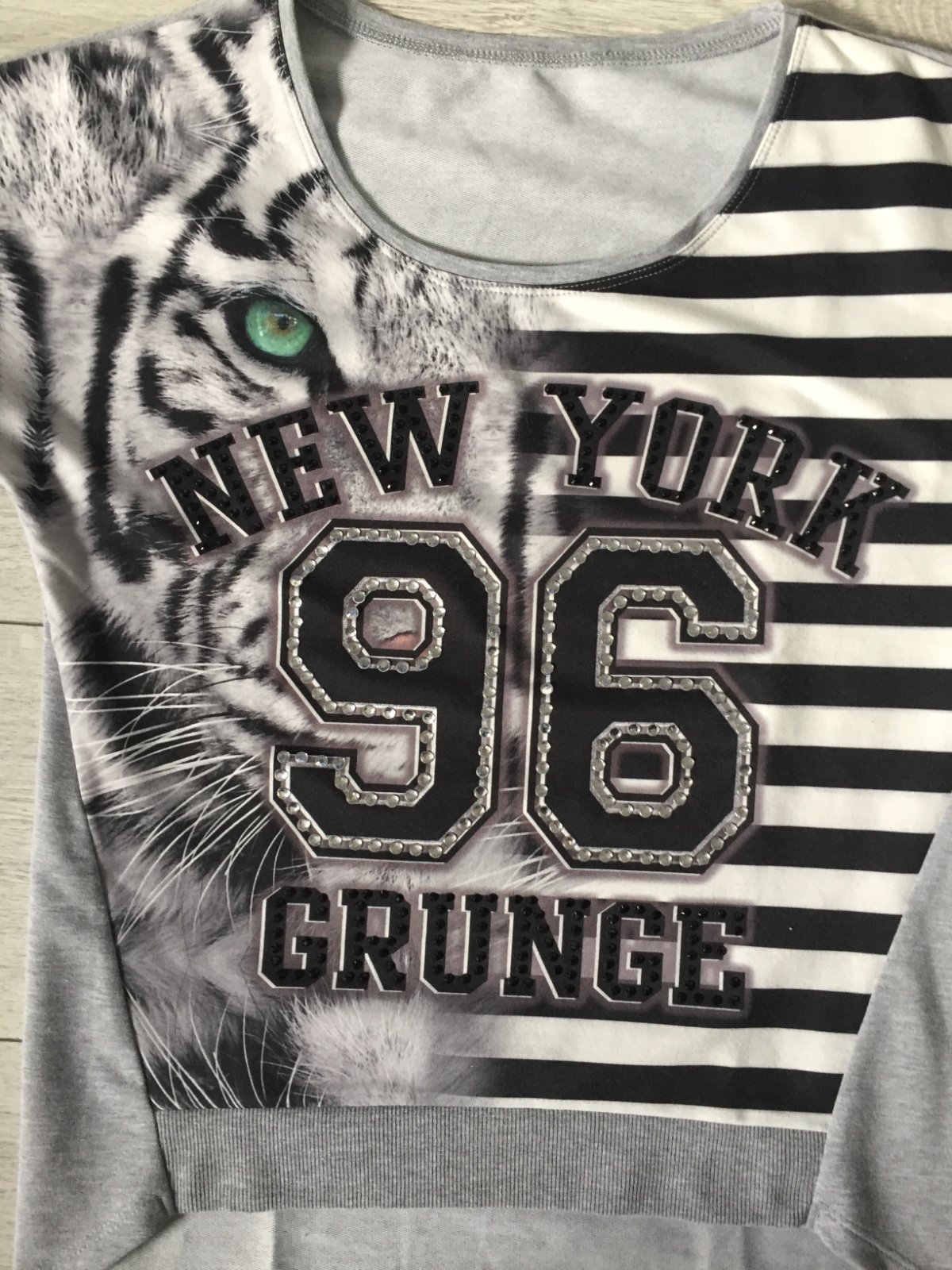 Tričko v dobrom stave. Ma odstrihnutu visačku. Dlžka vpredu 56cm, širka cez pazuchy 44cm, rukav od krku 66cm.