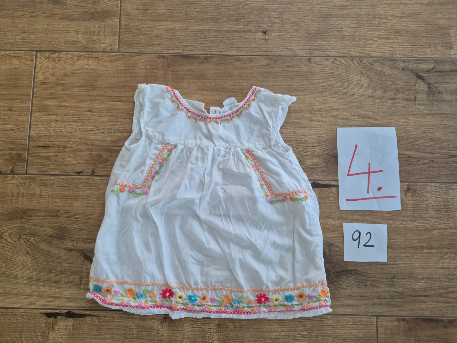 Oranžové je velkost 92 Biele s konikom je 98/104 Biele summer ma mini fliačik nie je ho ani vidieť veľkosť 86 Nosili sme ich spolu ako veľkosť 92 preto dávam v jednom inzerate Cena bez pošty