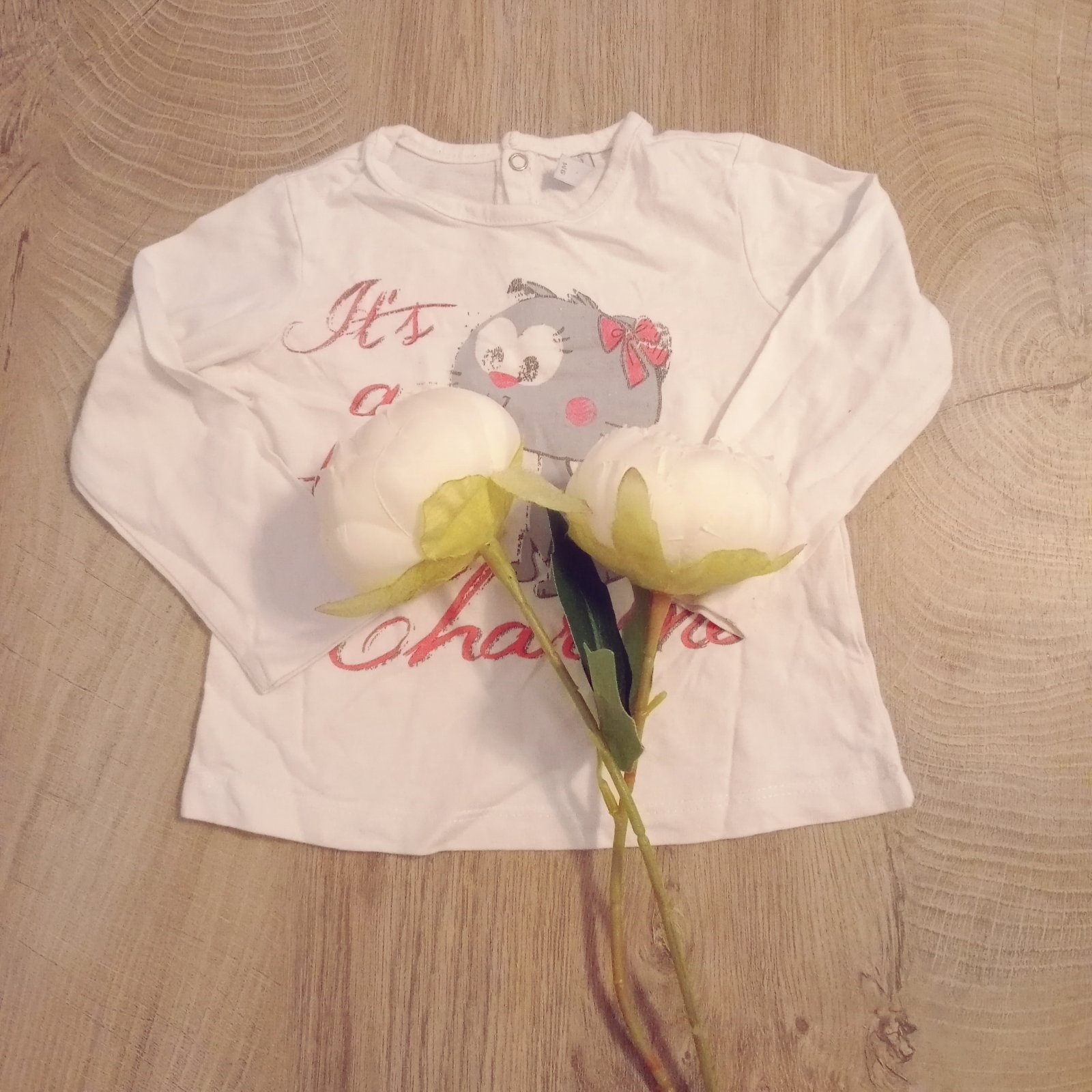 Ako nové. Veľmi pekne sedí. Kabelka mačička mení farbu z čiernej na striebornú. Veľkosť na 9 mesiacov.