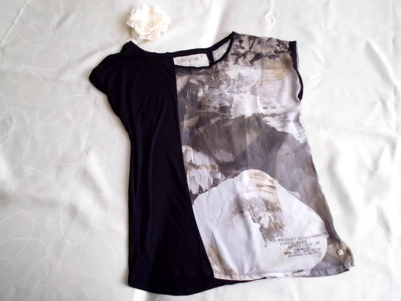 Predám dámske tričko Garcia Jeans vel. S aj M, šírka 51 cm, dĺžka 64 cm , veľmi príjemný tenší materiál časť blúzkový + pružný tričkový, farba čierna + sivo olivové odtiene , top stav