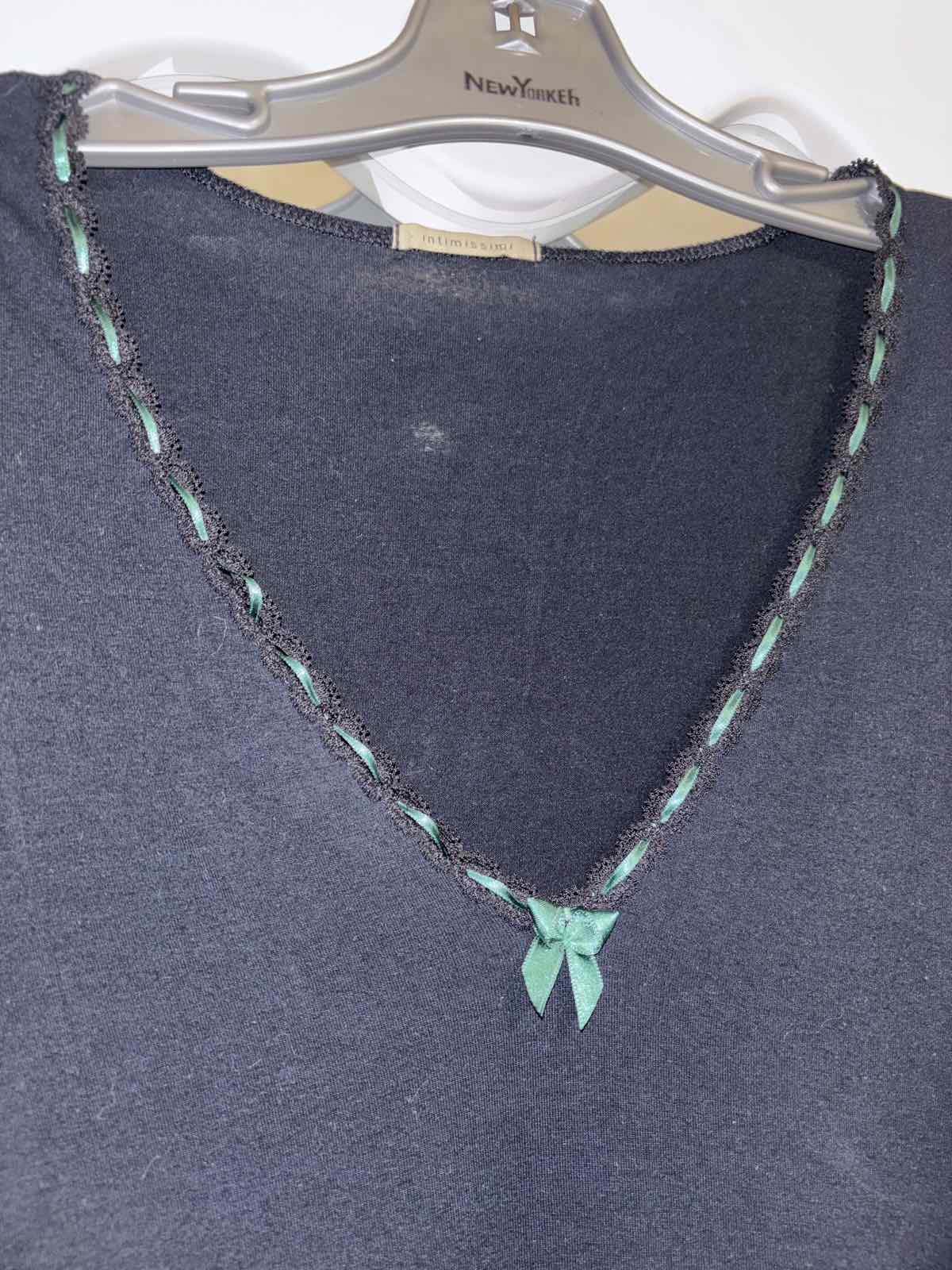 Výborný stav, pružné, čierne so zelenou stuhou, sedí na S/M, šírka pod pazuchami 38 cm, dĺžka 62 cm