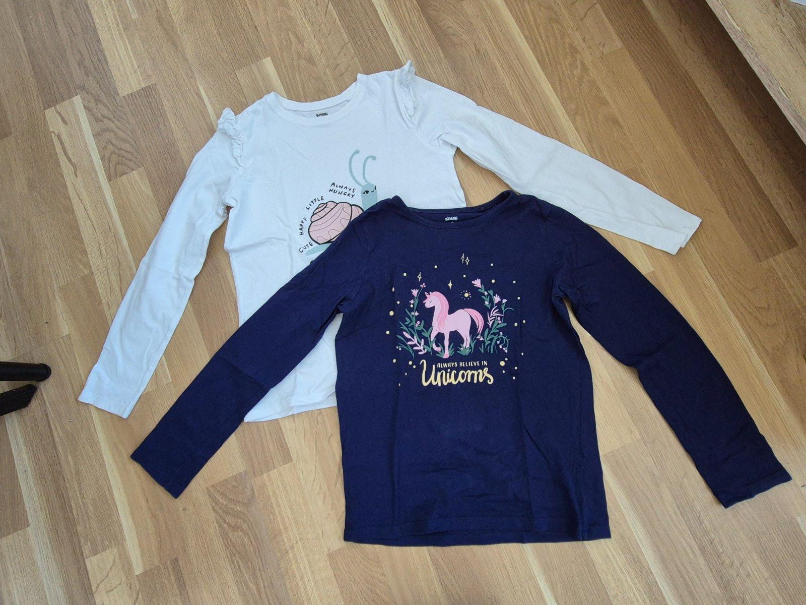 Tričká málo nosené, Modré bez chyby, na bielom bledý fliačik v dolnej časti, neviem, či pôjde vyčistiť. Cena spolu.