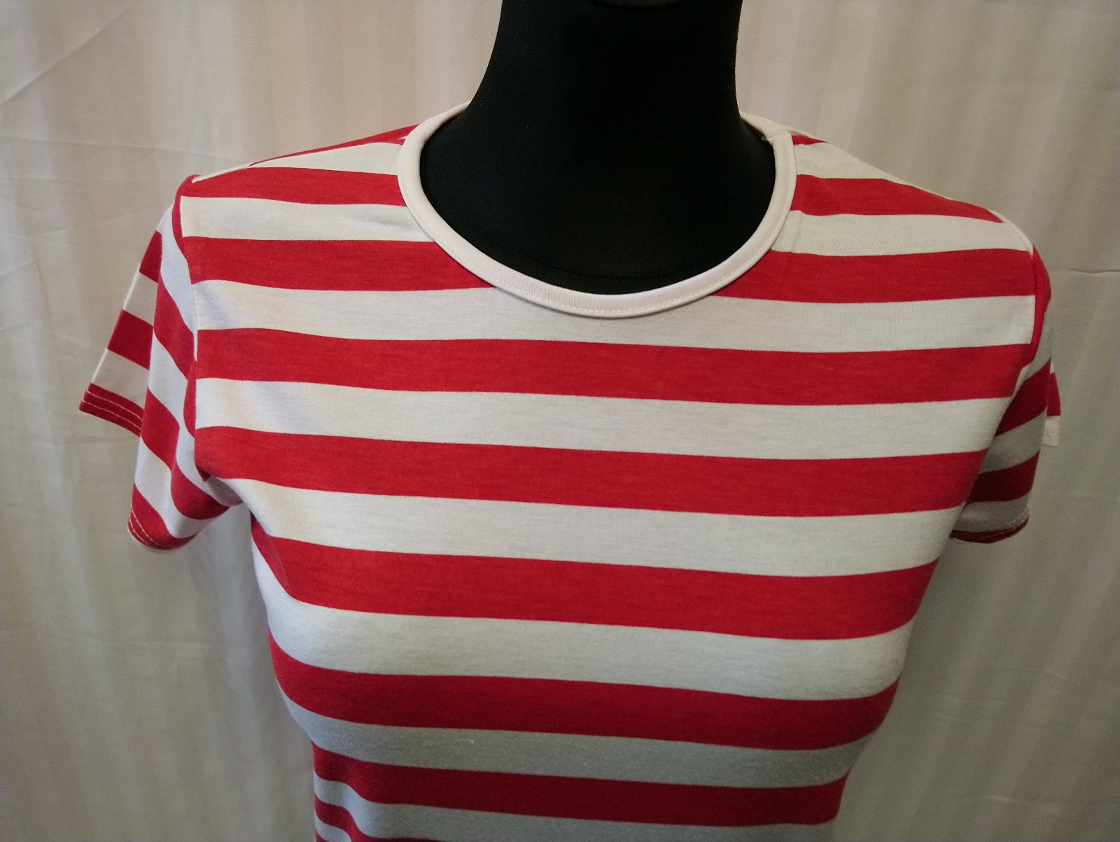 dámsky elastický pásikavý červeno biely top,