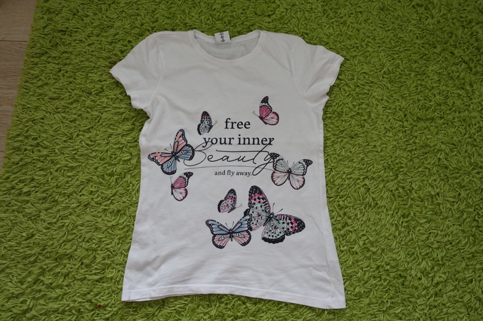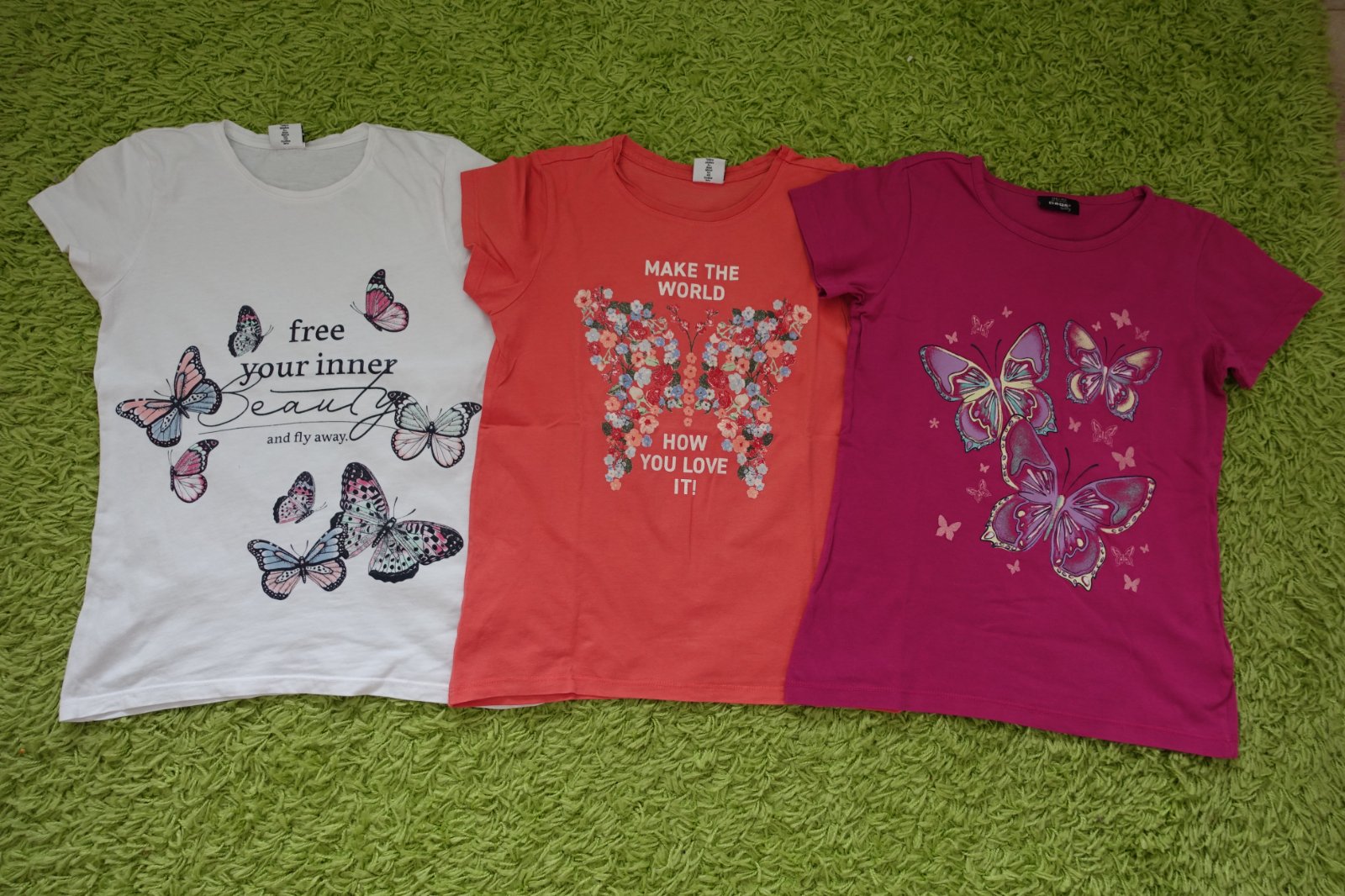 Predám 3 tričenká všetky vo veľkosti 146/152. Všetky sú rovnakej značky. Oblečené boli max 2-3x, sú v krásnom nosenom stave, až top stav. Všetky tričenká sa miestami trblietajú. Nemajú ani fľaky, ani dierky, ani žmolky. Celková dĺžka všetkých tričeniek je 53 cm. Predávam iba ako celok, samostatne nepredávam. (G)