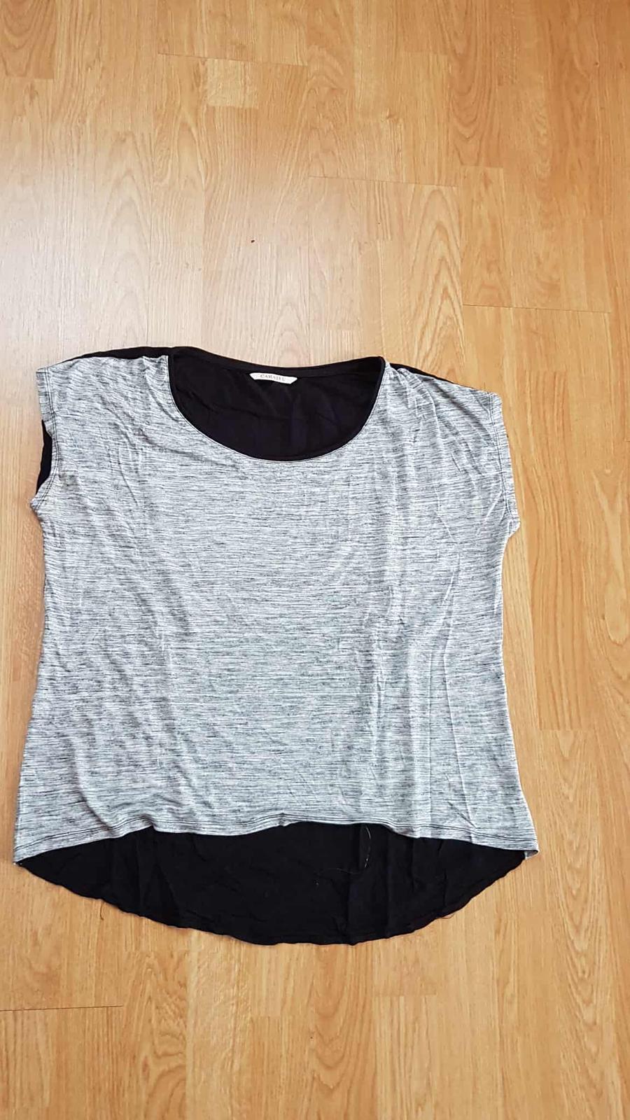 Pekné tričko zo šedo strieborným predným dielom, v zadu čisto čierne. šírka popod paže je 56 x 2 cm.
