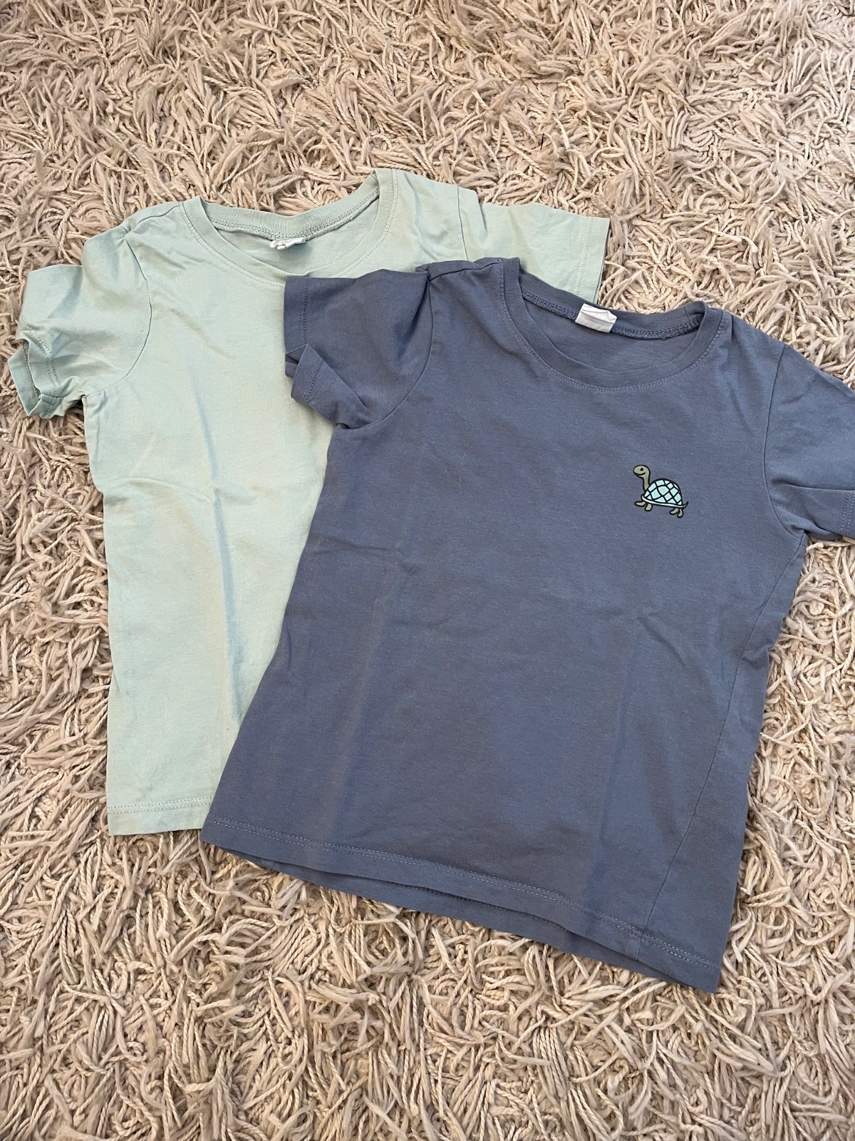 Oversize tričká, veľkost 98/104, bledé vzaté 2x, tie s listami iba opraté, cena za obe spolu 5€ alebo 3€/ks