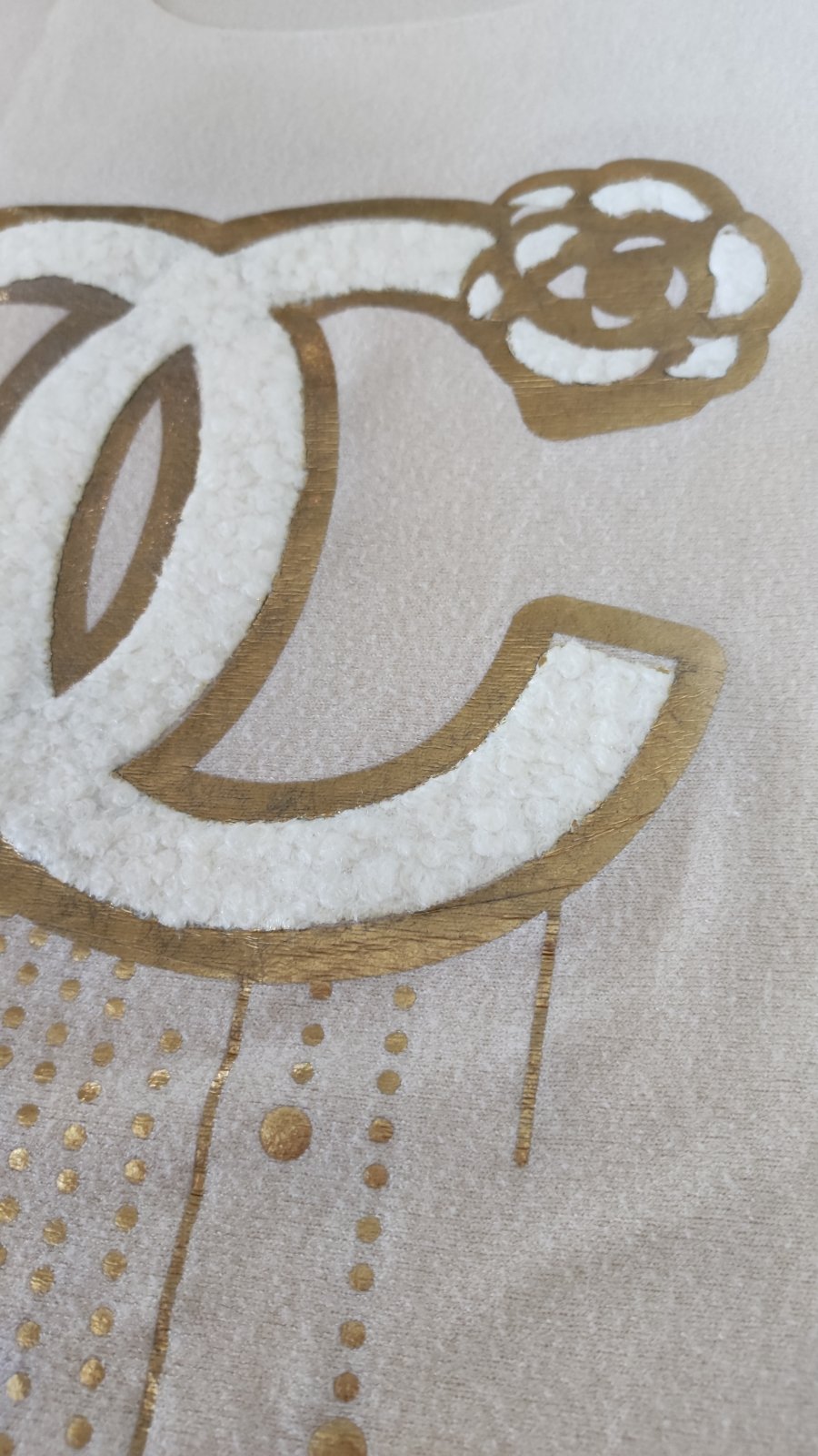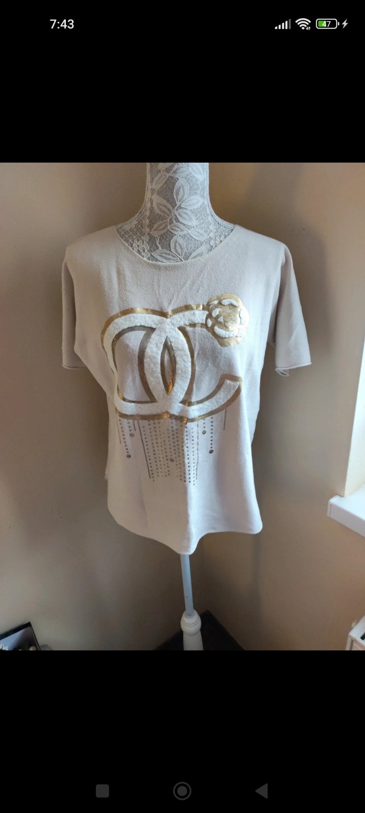 Pekné úpletové tričko, 100% stav, aplikácia bola ručne dodatočne vyšívaná, dĺžka 70cm, šírka 53-59cm.