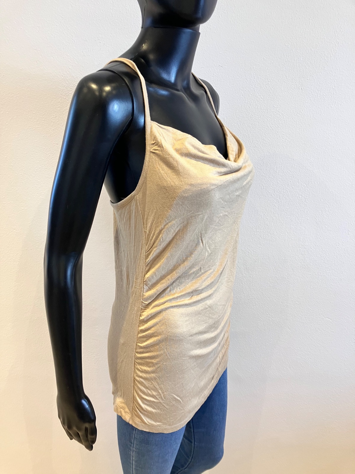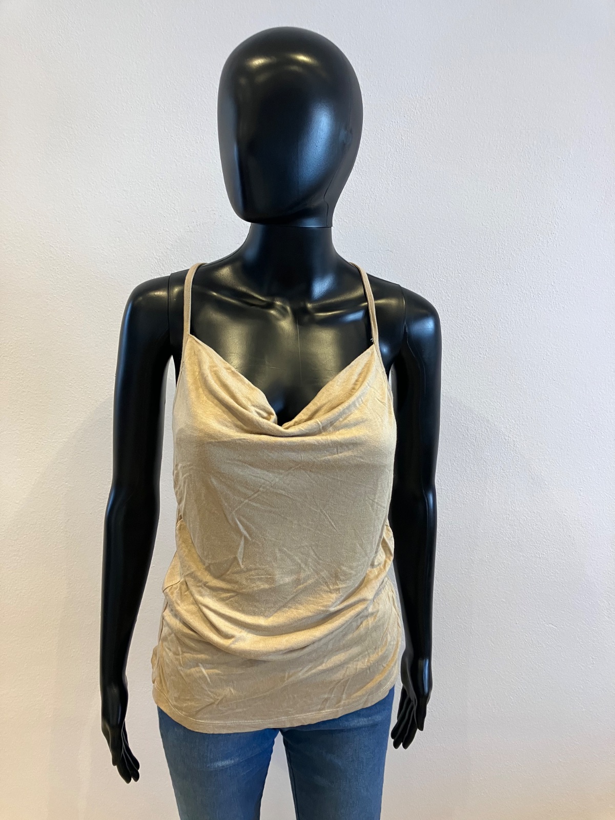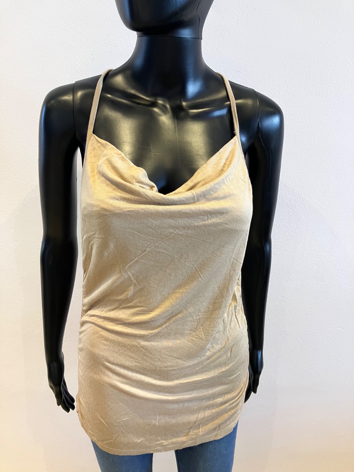 Dámske hnedé tričko bez rukávov, elastické.