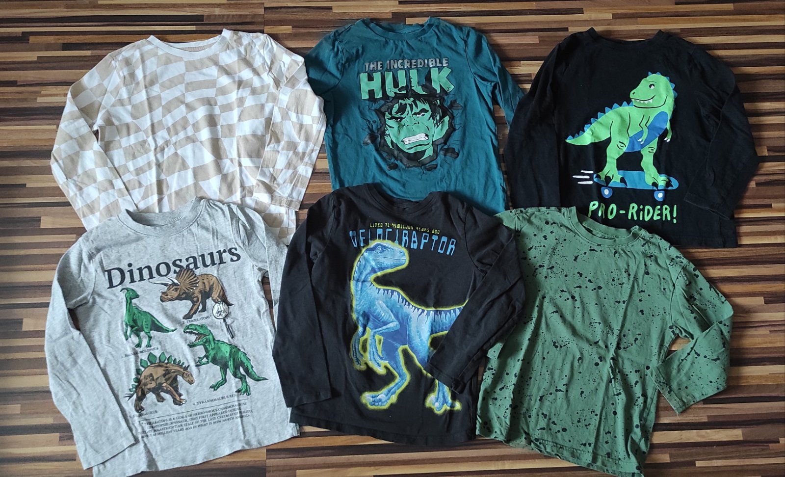Predám kvalitné tričká do školy svetlo sive s dinosaurom veľkosť 122, tmavo modré polícia, veľkosť 128, kúpené Nemecko, oranžové veľkosť 128, kúpené Nemecko - všetky top stav. Predávajú sa, ako ko...