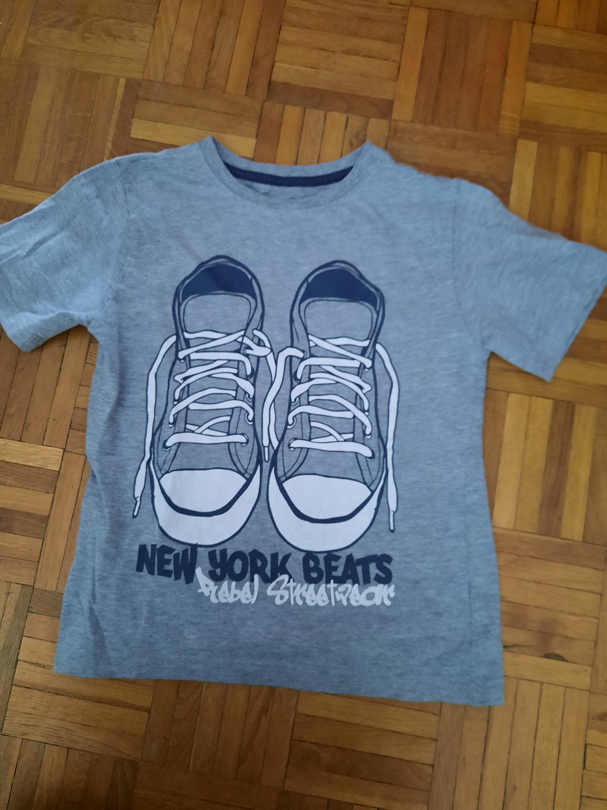 šedá farba, dobrý stav materiál: bavlna veľkosť: 7 - 8 rokov rozmery: dĺžka od pleca dole 55 cm, šírka pod pazuchou 43 x 2 cm