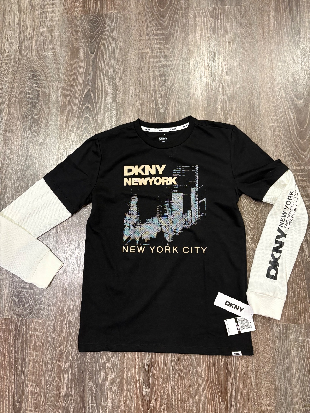 010.DKNY nove chlapcenske tričko vo velkosti 14/16 rokov,dlzka je 63cm,dlzka rukava od krku je 74cm a sirka v podpazusi je od 45x2cm do 53x2cm