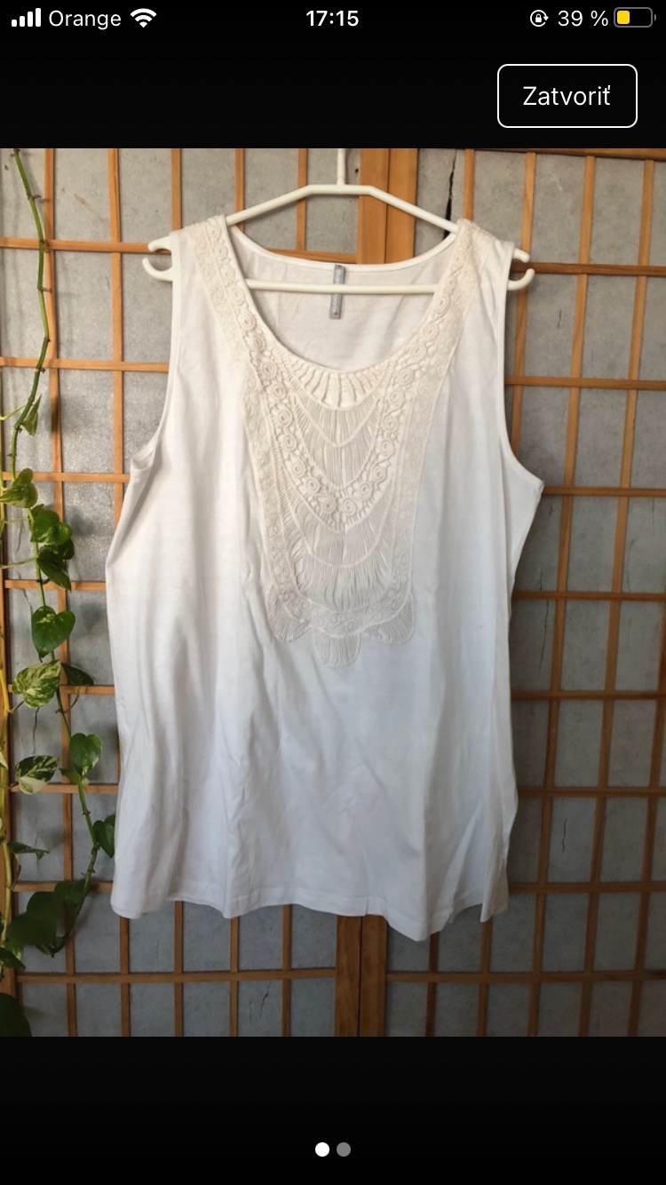 dámsky biely top bez rukávov, príjemný kvalitný materiál, zloženie: 56 % bavlna, 44 % viscoza, stav: dobrý, málo nosený, žmolky od prania, značka: dovoz, uvádzaná veľkosť na štítku XL, je väčší, ...