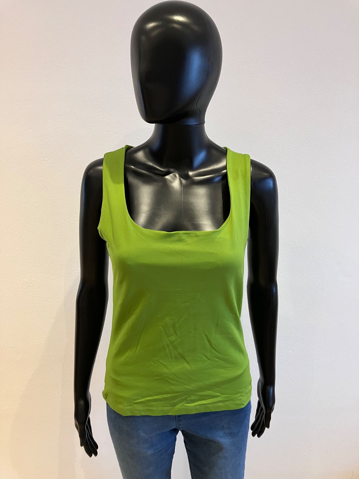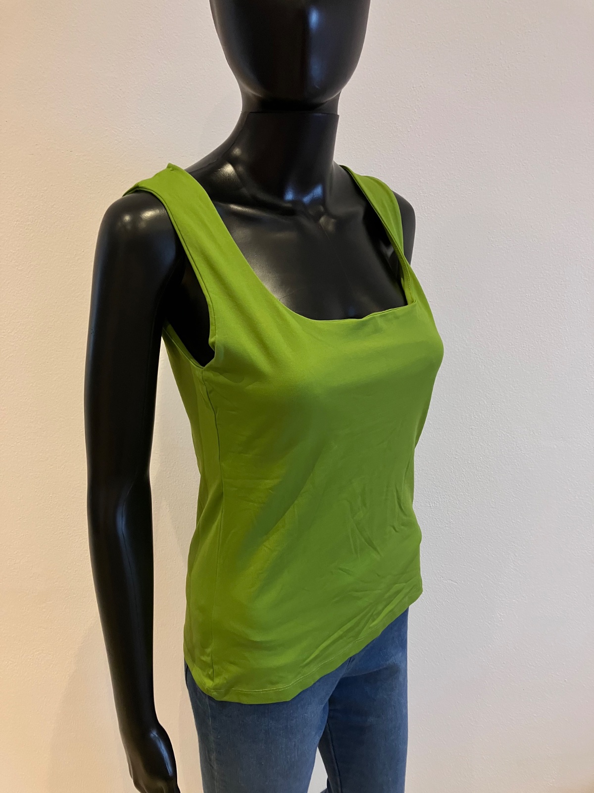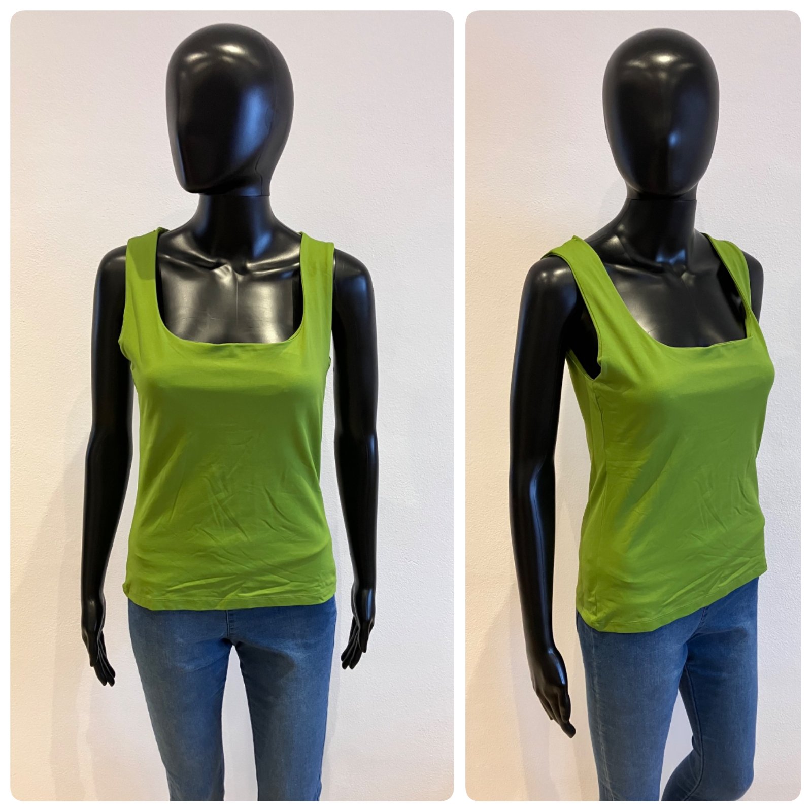 Dámsky top bez rukávov, elastický, účkový výstrih, nie je priesvitný. Veľkosť cca L.