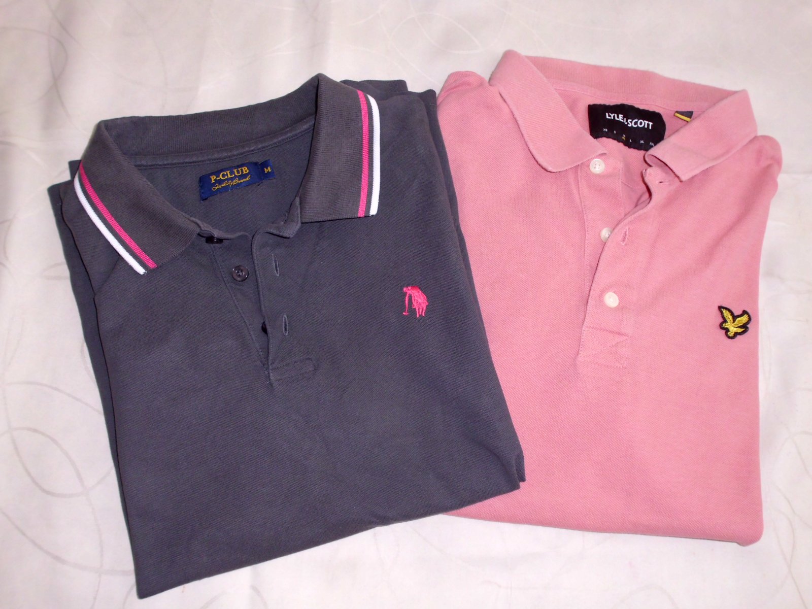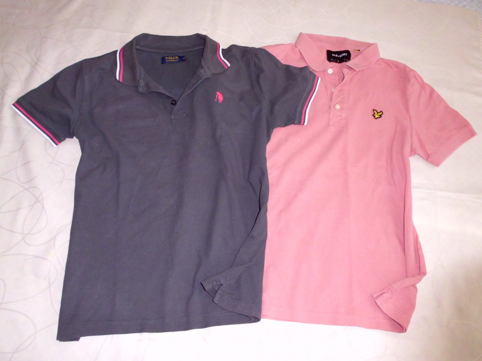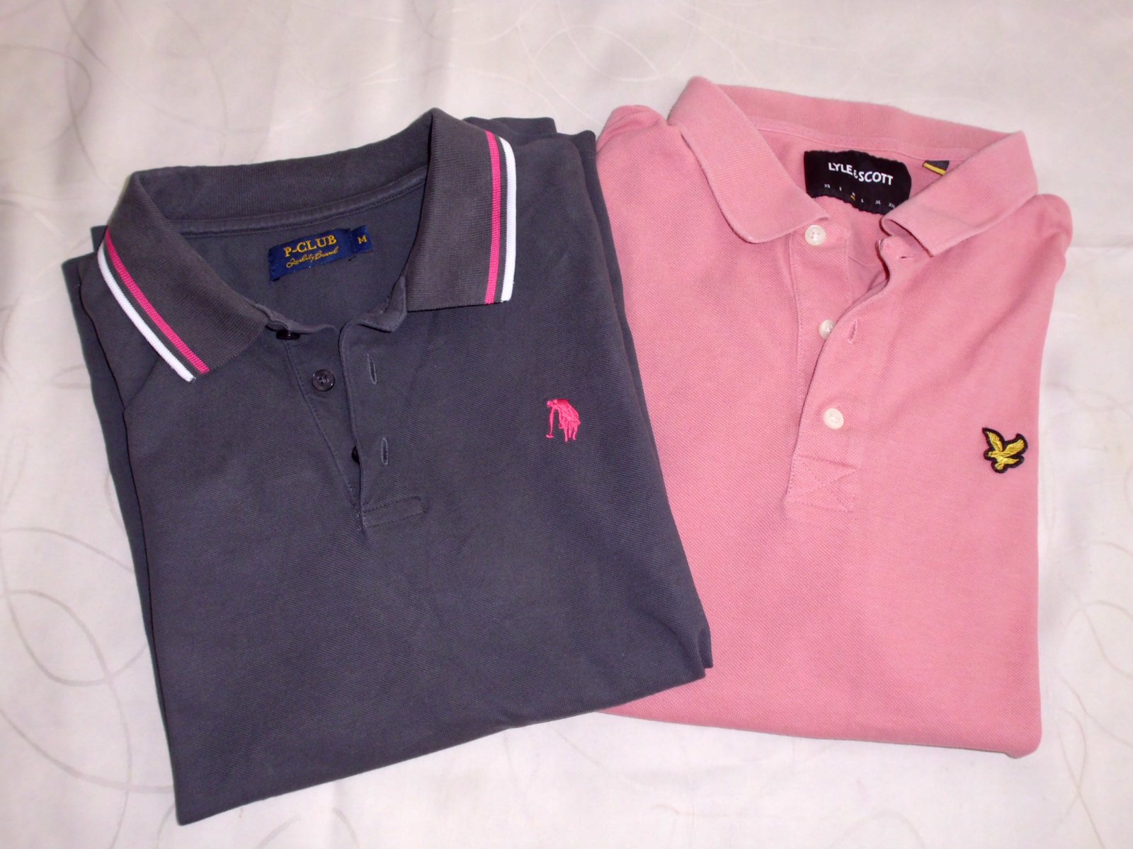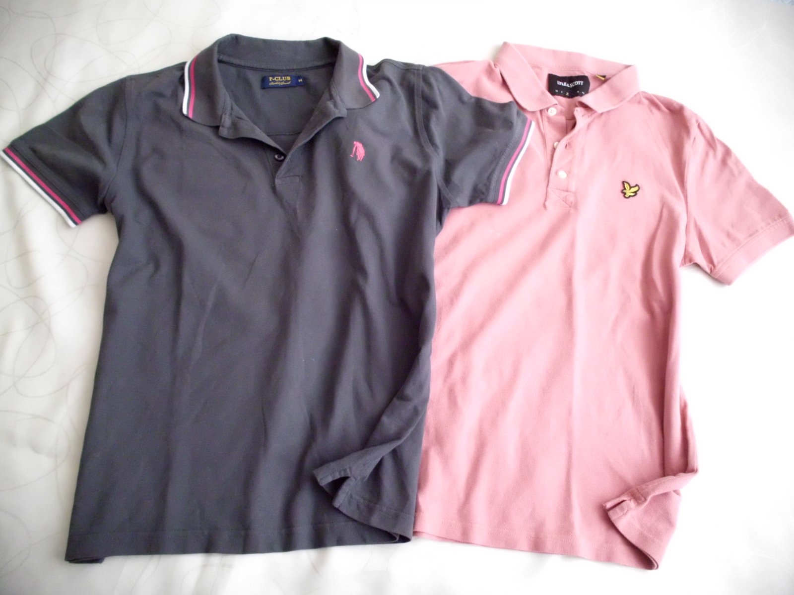 Predám 2ks pánske polo tričká P-Club+ Lyle&Scott vel. M , šírka 53-54 cm , dĺžka 71 lososové a 68 cm šedé, rukáv obe 21 cm , materiál príjemný piké, farba tmavošedé + lossové ,top super stav