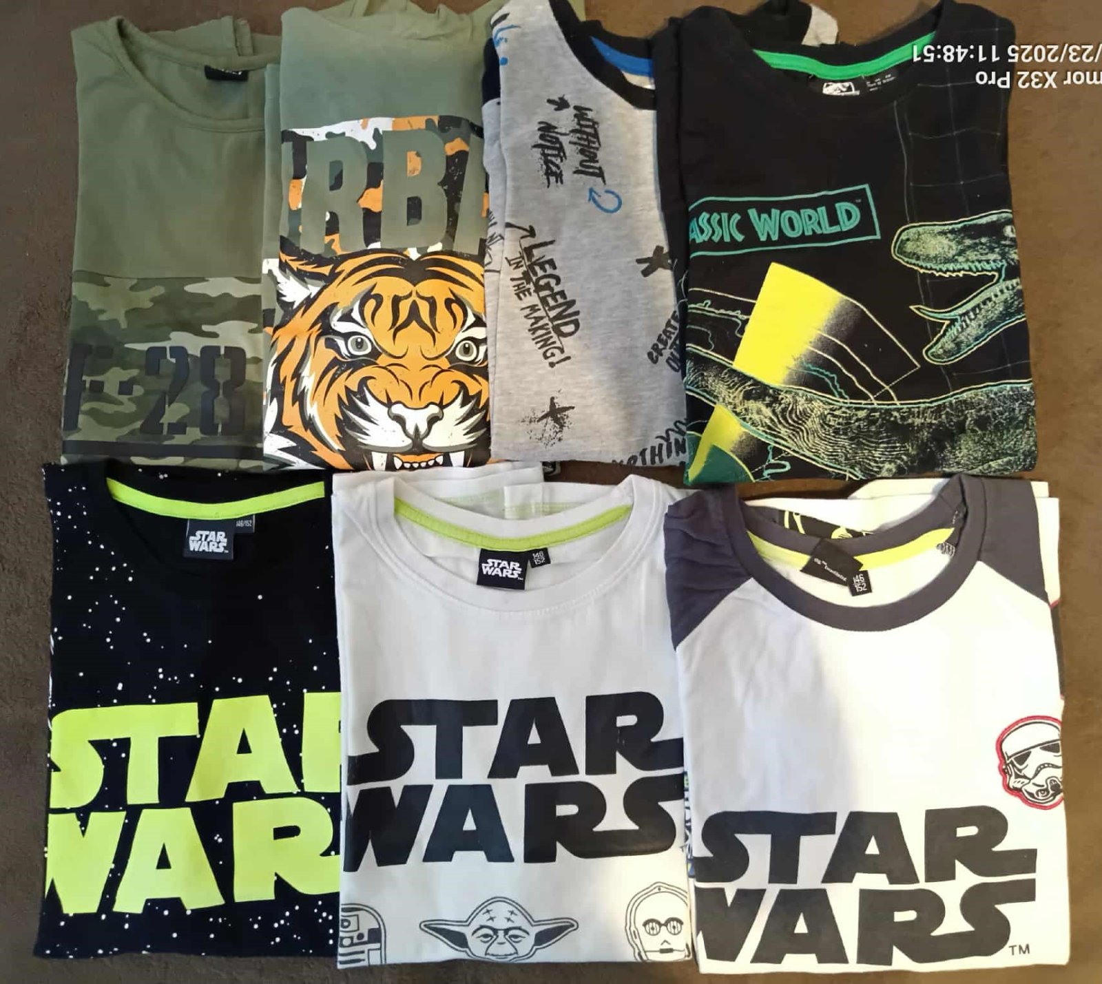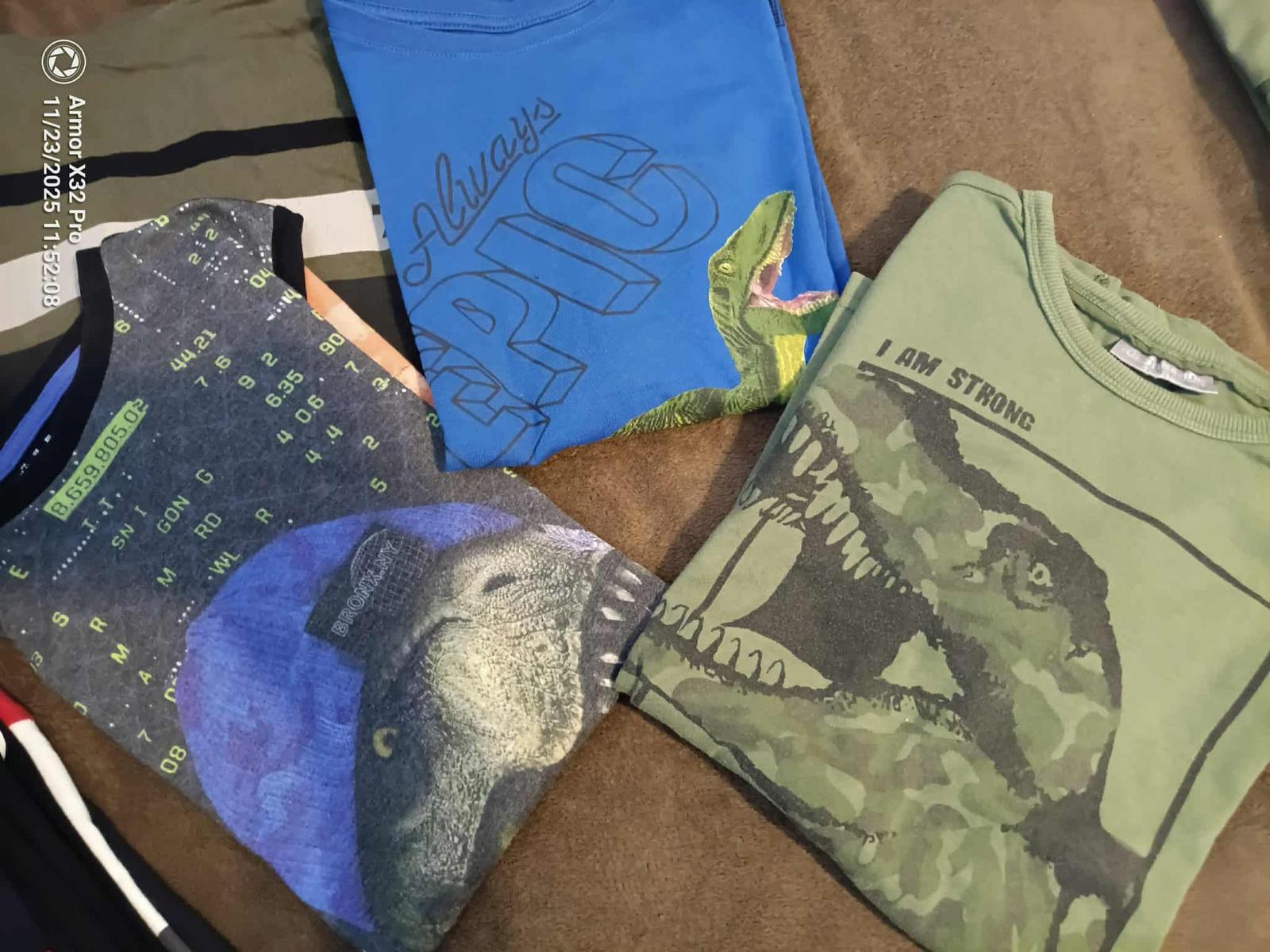 8xdlhý rukáv (na fotke - kde sú tričká s dinosaurami )
