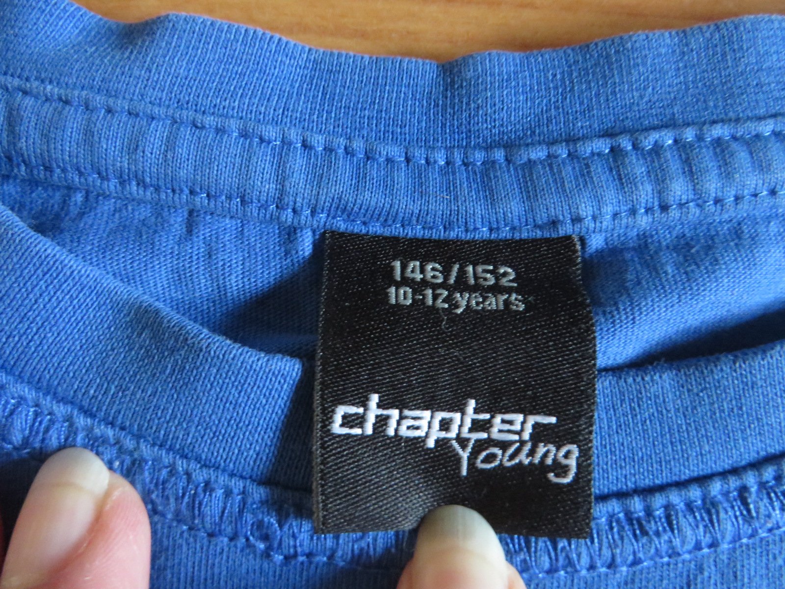 5/ Tmavomodré tričko, veľkosť 146/152, potlač na rukáve a prednom diely od novoty taká ako keby popraskaná, tričko je v dobrom stave, pridaný elastan, je elastickejšie - cena 2,70€