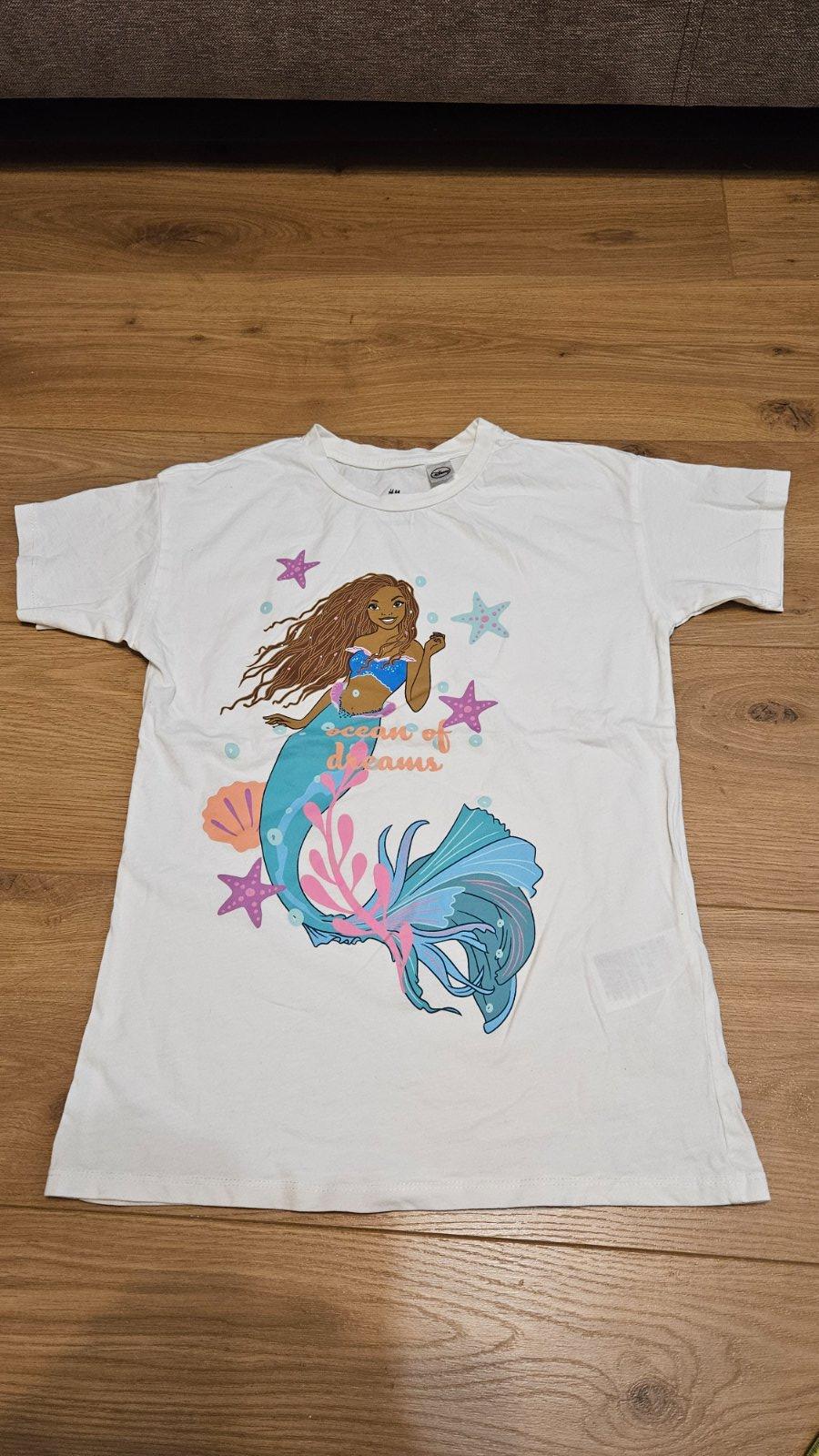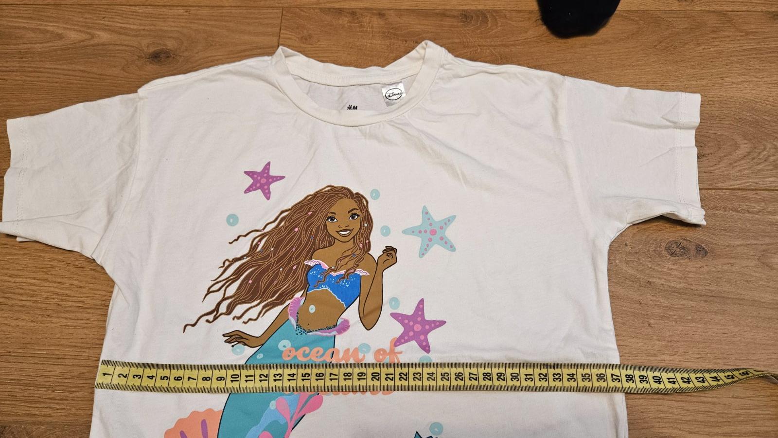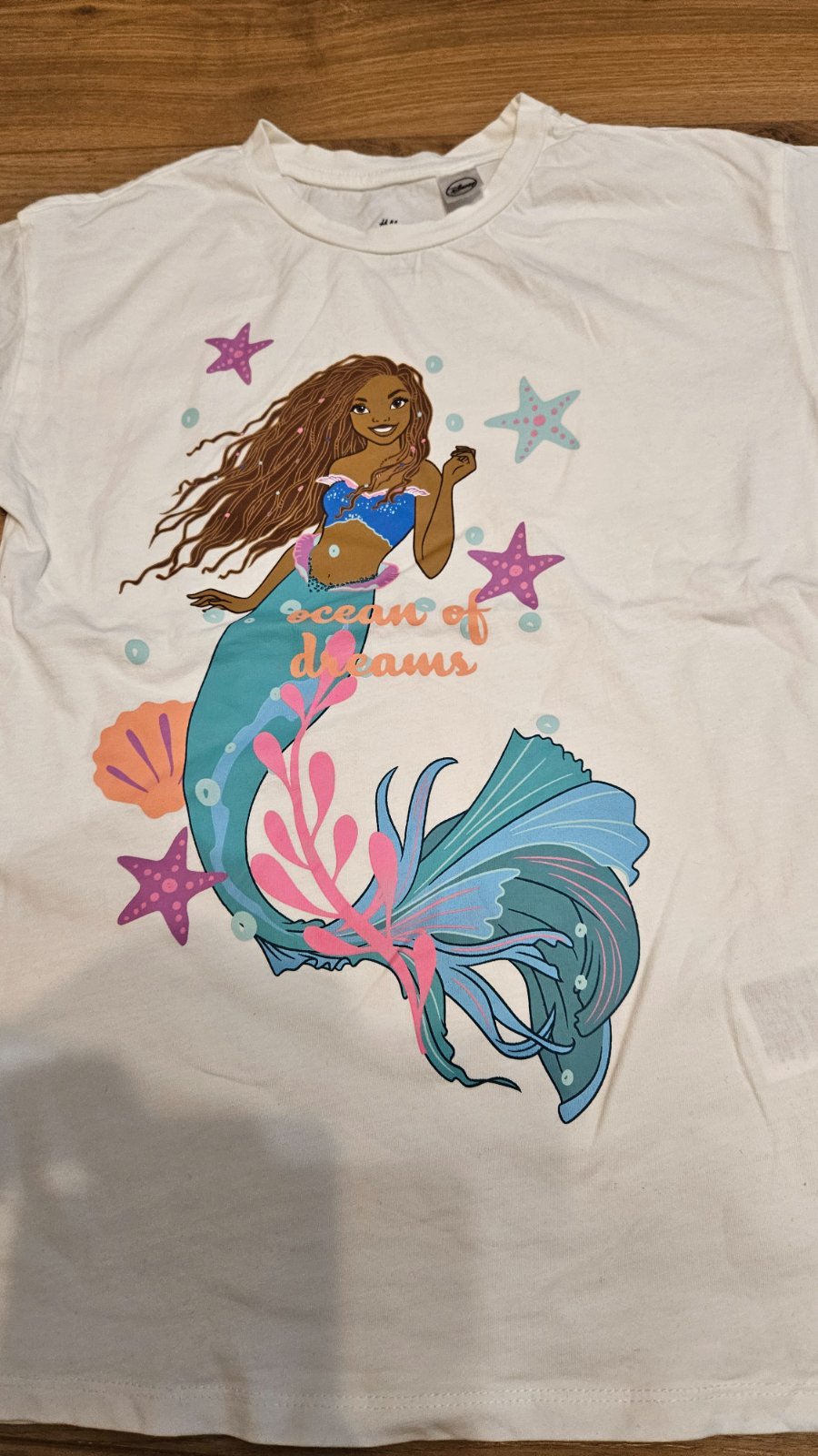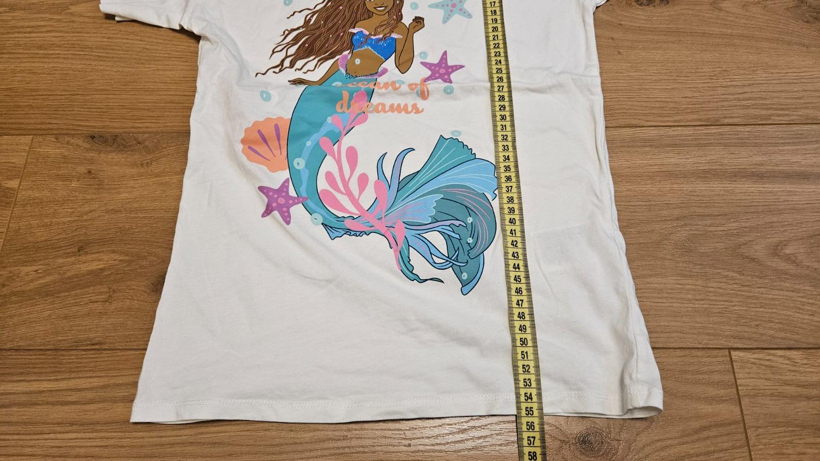 Súprava tričká a legíny s motívom Malá morská víla, zn. C&A, veľkosť 128. Kupované nové, tričko len oprané, nenosené, ako nové v top stave. Legíny párkrát oblečené, bežné známky nosenia. Rozmery a zloženie na fotkách.