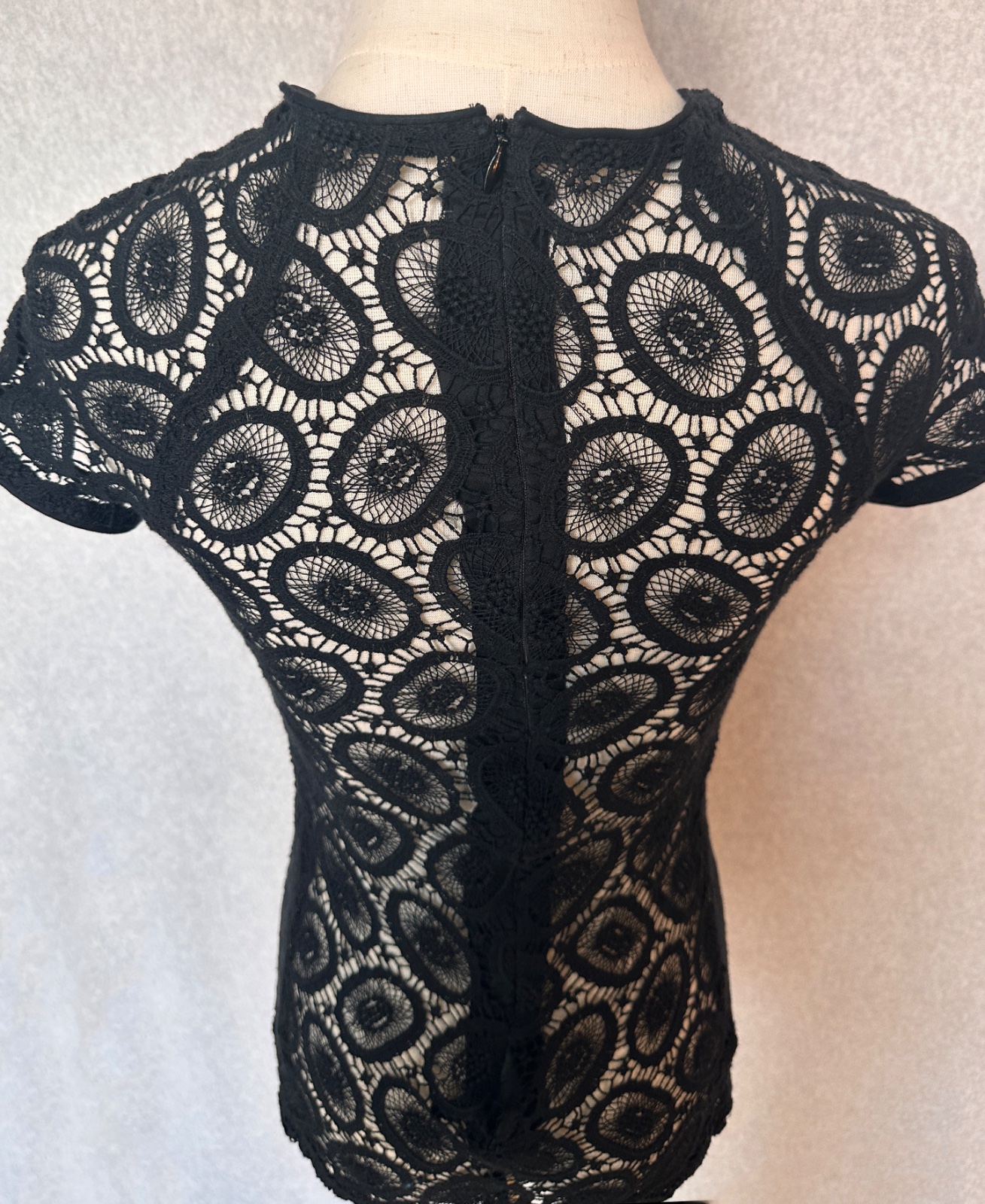 Originál Burberry exkluzívny čipkovaný top na telo so zapínaním na zips na chrbte. Čipka je poddajná, prispôsobí sa postave. Veľkosť je uvedená S, ale sedí skôr na XS, preto inzerujem XS.