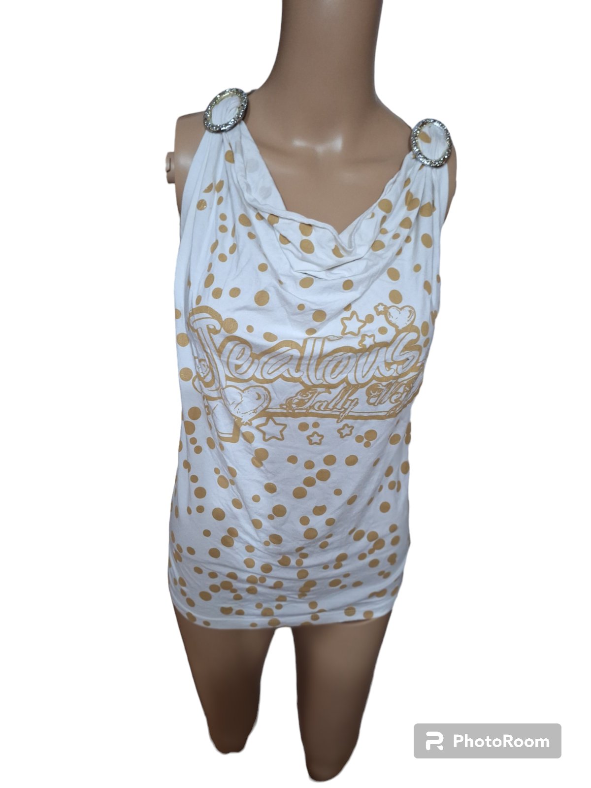 Dámske bavlnené tričko. Je elastické. Dĺžka je 60cm,obvod hrudníka je 82cm a obvod pása je 76cm. kód 2A