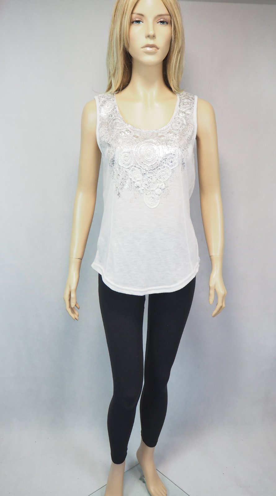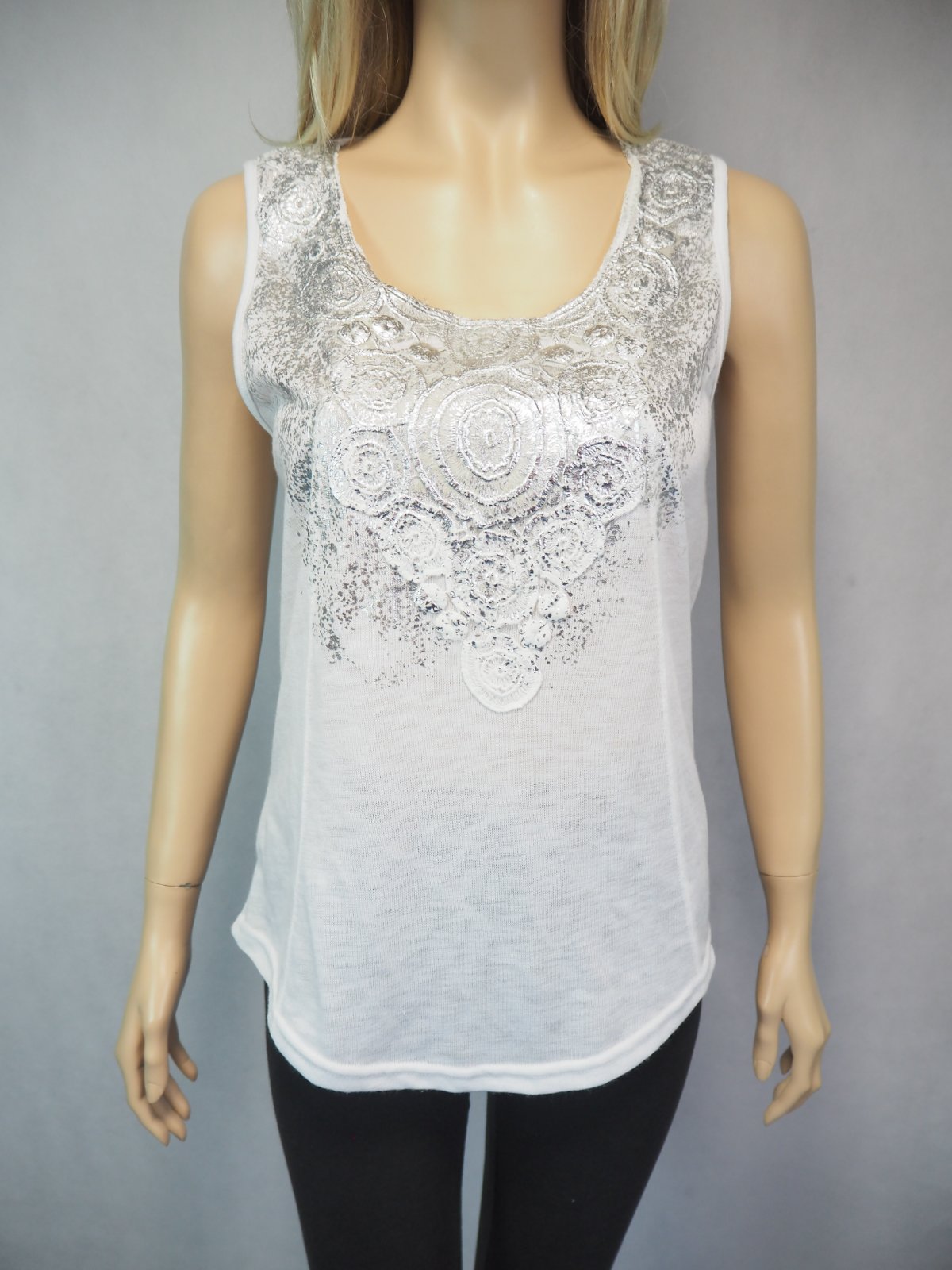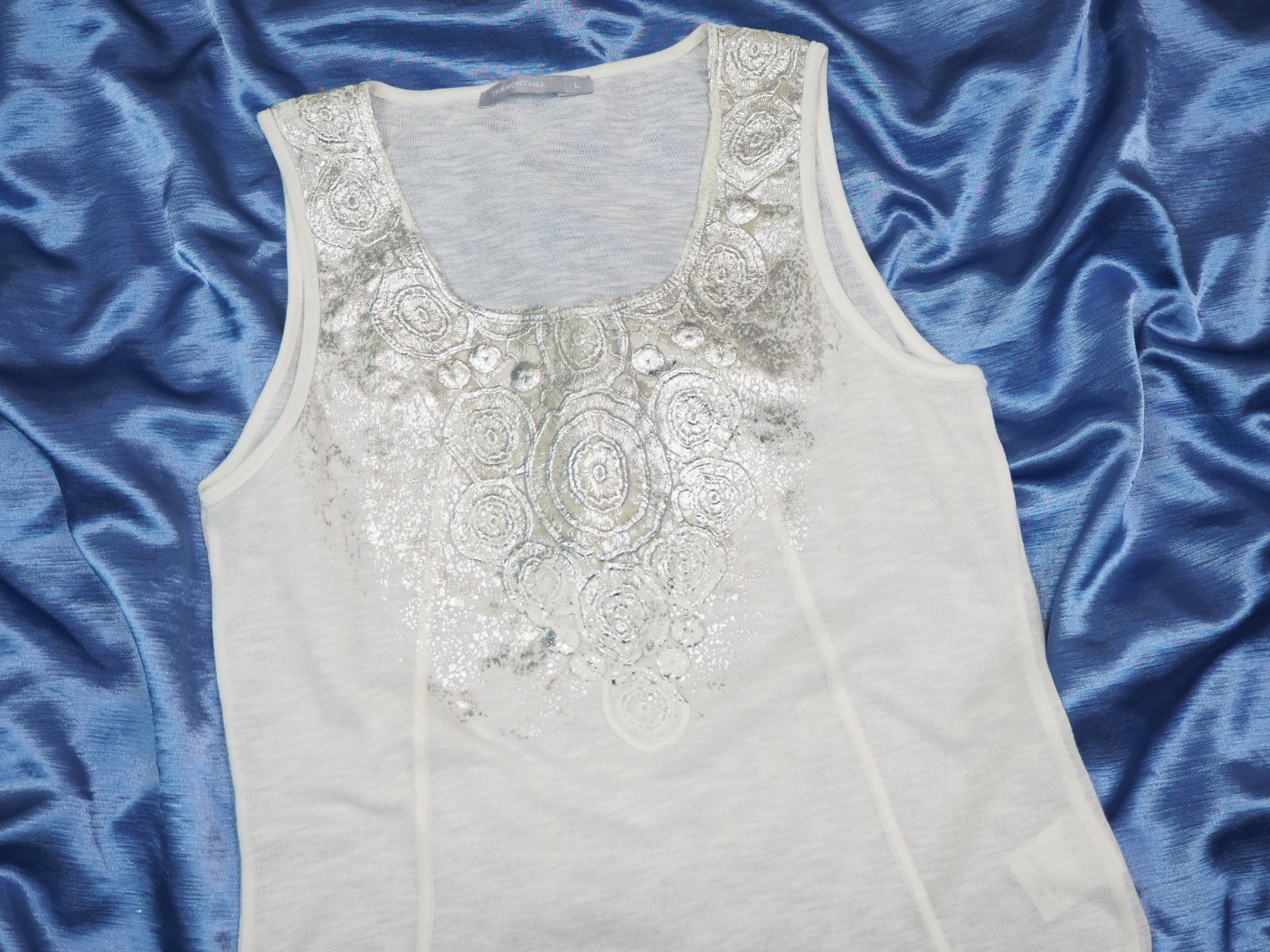 Luxusný biely top so striebornou potlačou, materiál 100% polyester, super stav, ako nový.