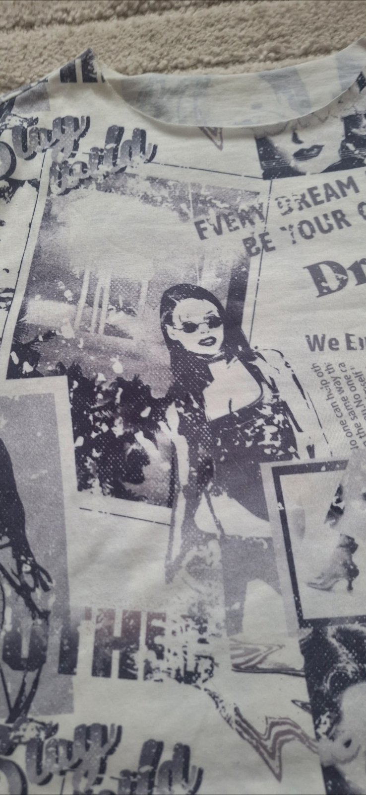 Veľmi príjemný materiál, bavlna s elastanom, uvedena veľkosť na tričku je xl, ale je to taká 38, šírka cez prsia 2x 43, dĺžka 54 cm