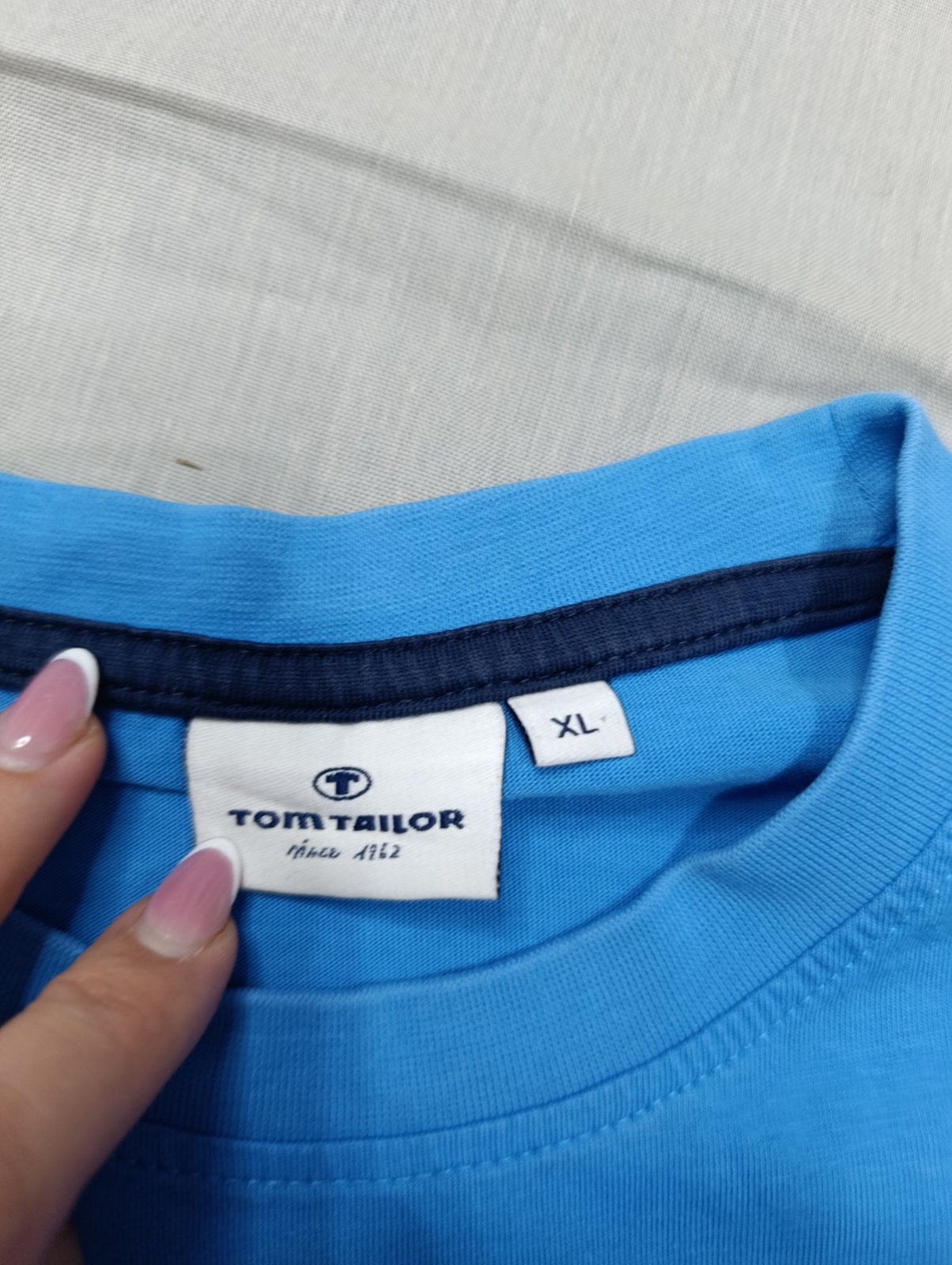 Pánske letné tričko s krátkym rukávom. Bledomodré s potlačou. Značka Tom Tailor. Veľkosť XL. Zachovalé, bez poškodenia. Rozmery: dĺžka 72 cm, šírka v podpazuší 2 x 61 cm.