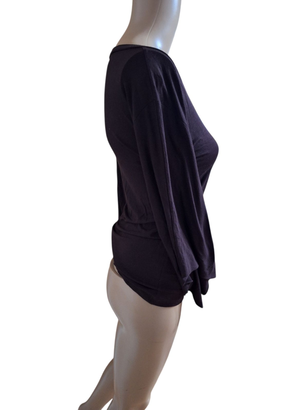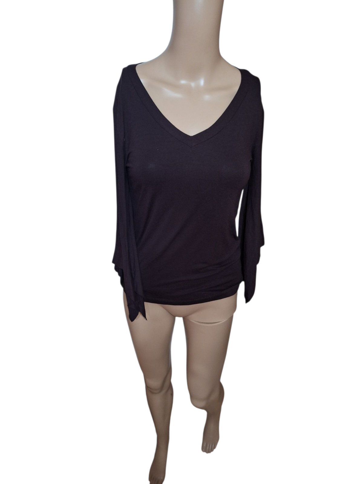 Dámske bavlnené tričko s okrasnými rukávmi značky Victória Mailand. Je elastické. Dĺžka je 60cm,obvod hruníka je 80cm a obvod pása je 76cm. kód 209