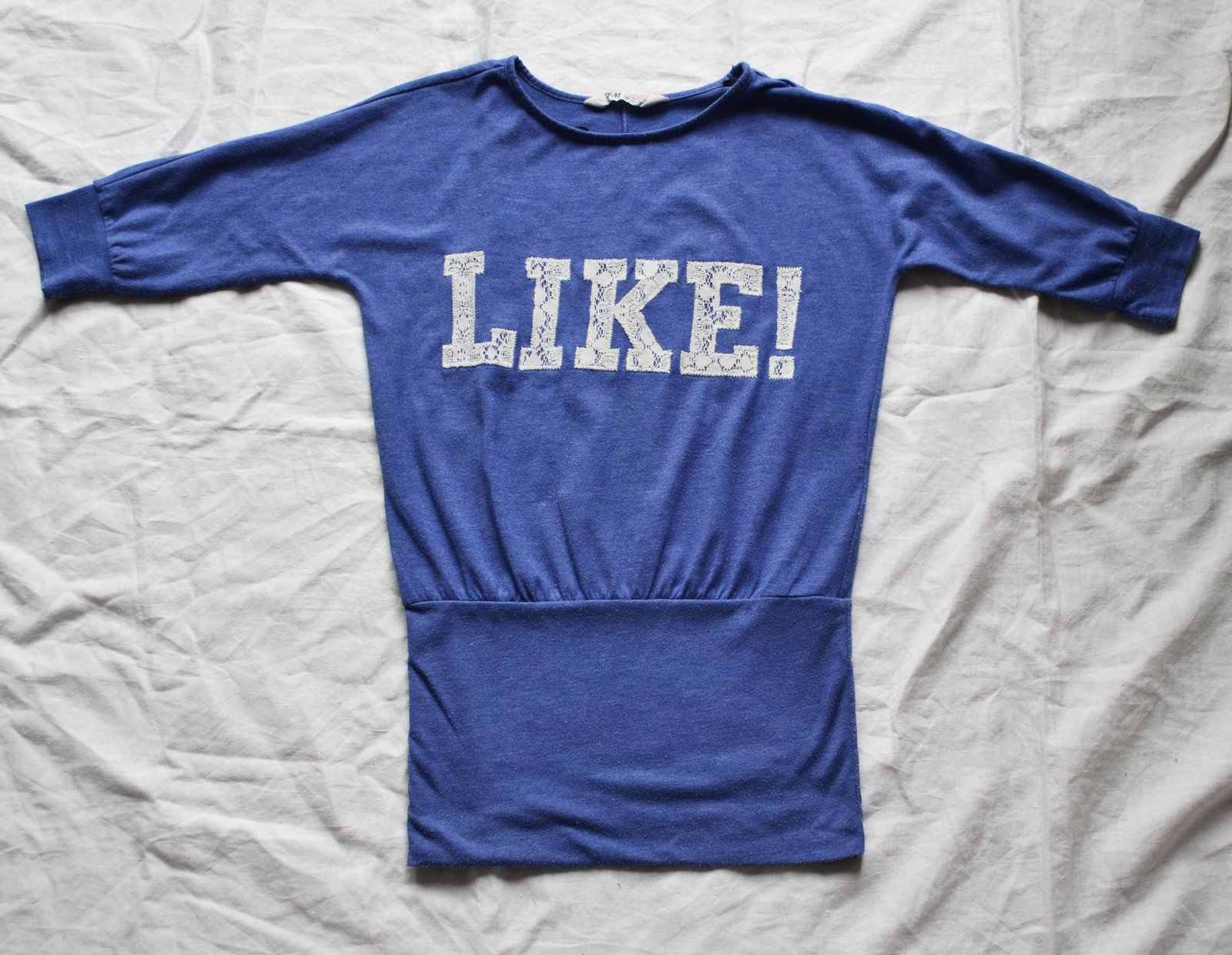 Tričko s nápisom LIKE, nosené, veľmi dobrý stav. D 63 cm, Š pod pazuchou 44 cm, rukáv od krku 41 cm